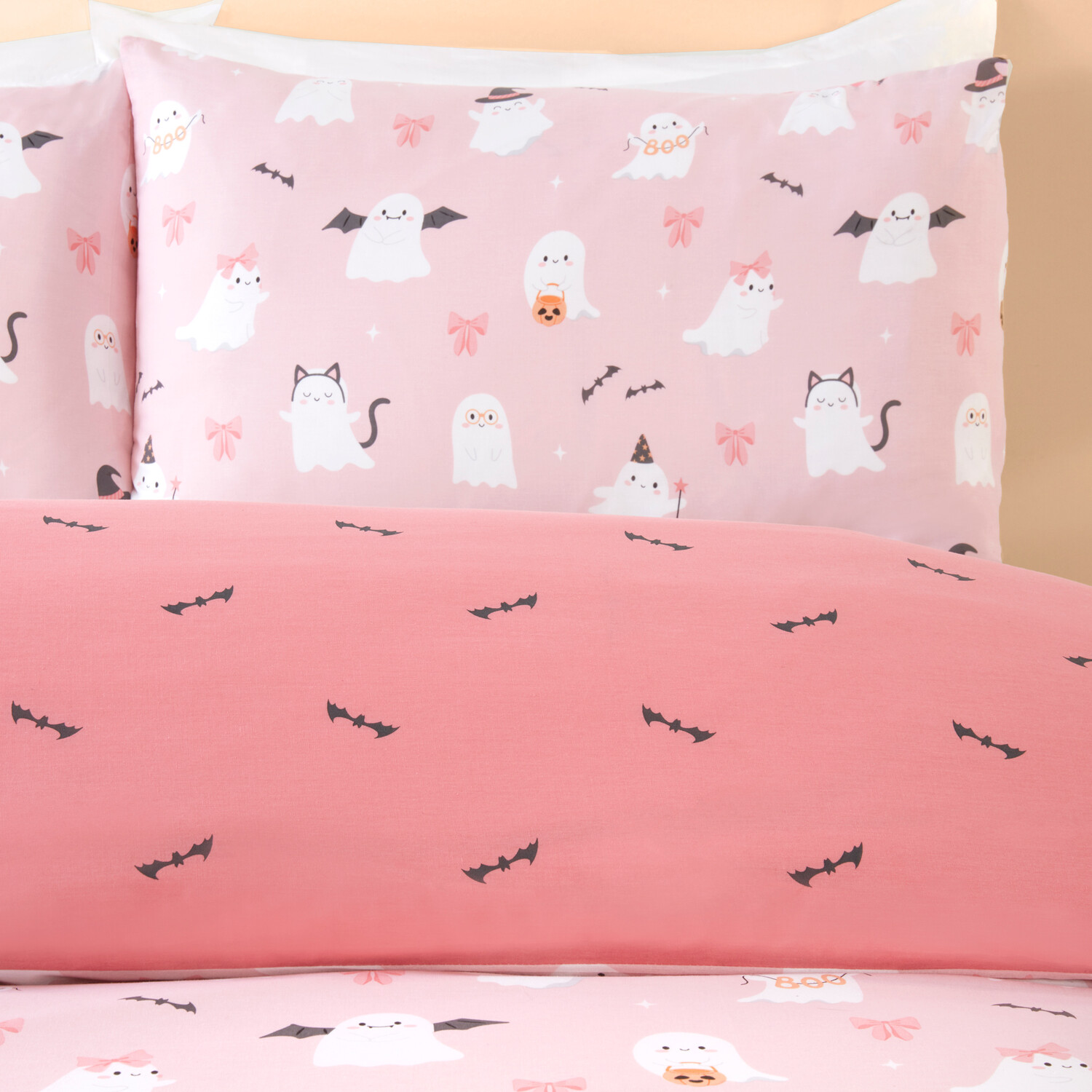Add a touch of Halloween charm to your bedroom with the Trick or Treat Blush Duvet Set. Featuring a playful design in soft blush tones, this cosy bedding set brings a festive yet stylish look to your space. Made from soft, breathable fabric, it ensures a comfortable night's sleep. Easy to maintain, this duvet is machine washable for hassle-free cleaning.