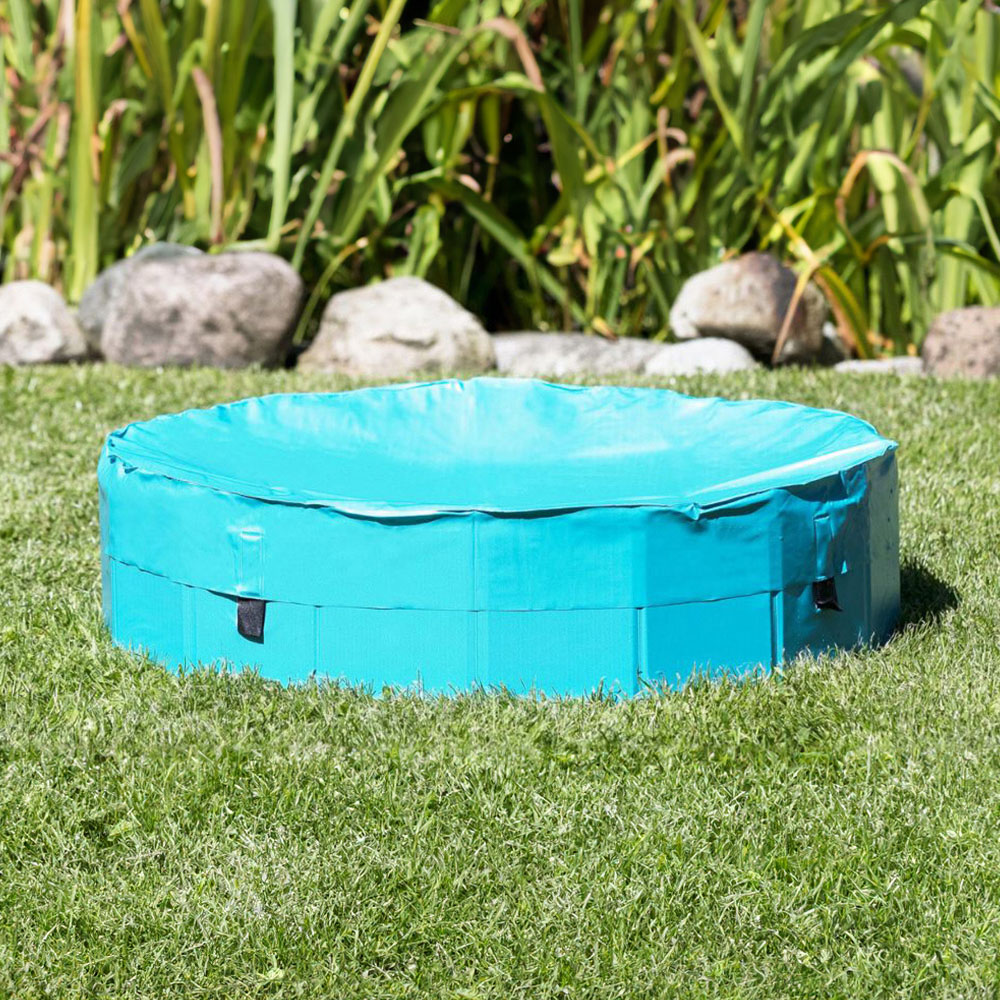 Keep your dog's pool clean and ready for use with the Trixie Dog Pool Cover. Made from durable plastic, this cover protects the water from dirt and falling leaves, ensuring a fresh and inviting pool for your pet. The cover is easy to secure with simple hook and loop fasteners (hook and loop fastener), providing a snug and reliable fit. Available in stylish petrol colour, it complements the pool while maintaining cleanliness. This cover is designed in size 70cm, making it an ideal match for small dog pools.