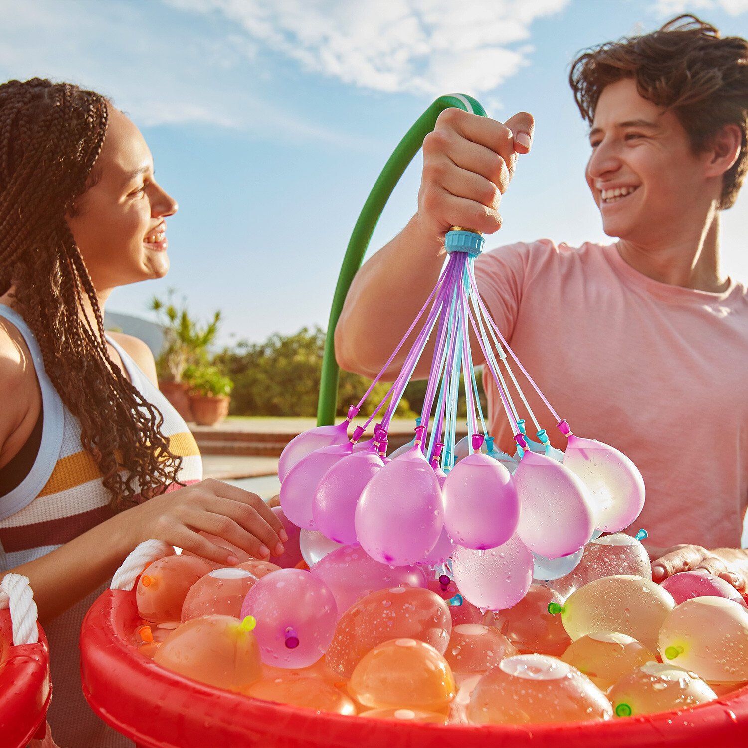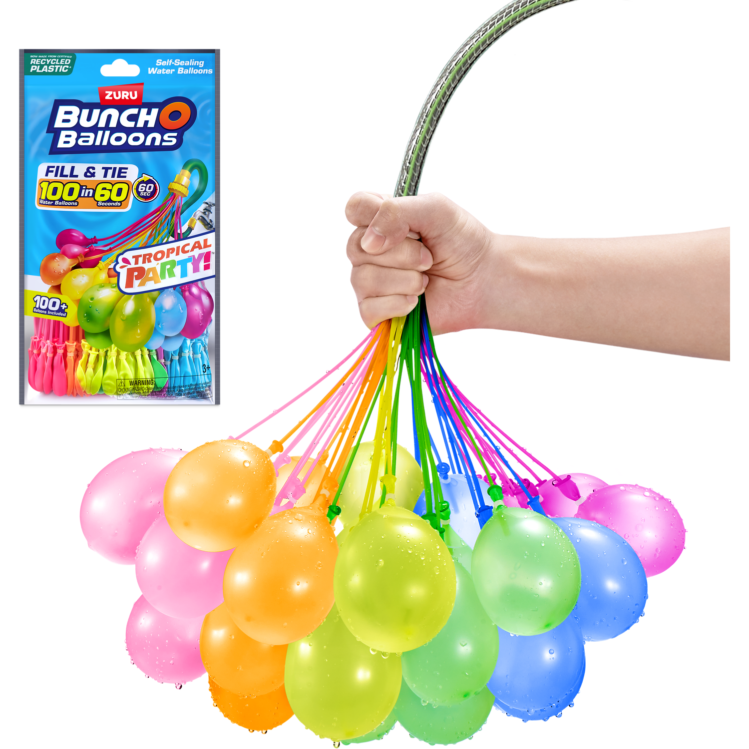 Splash into summer with the Tropical Party Bunch O Balloons. You can fill and tie 100 colourful balloons in just 60 seconds to start a tropical party to help you keep cool. Simply attach them to a hose and watch them fill! Easy to use, these are a great option for your next water fight.