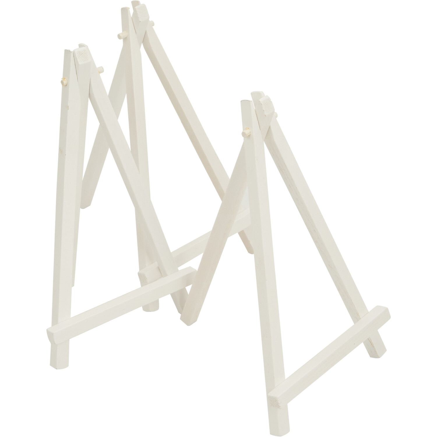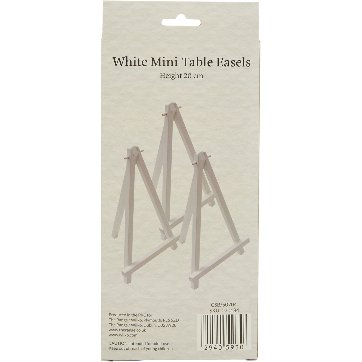 Display your artwork and photos in style with this pack of three True Moments Mini Table Easels in white. Perfect for weddings, anniversaries and other celebrations, each easel features a foldable, tabletop design that helps you place it on your table without taking up much space, and easily store it when not in use. Great for presenting photos, table numbers and more, it'll add a touch of personalised style to your decor.