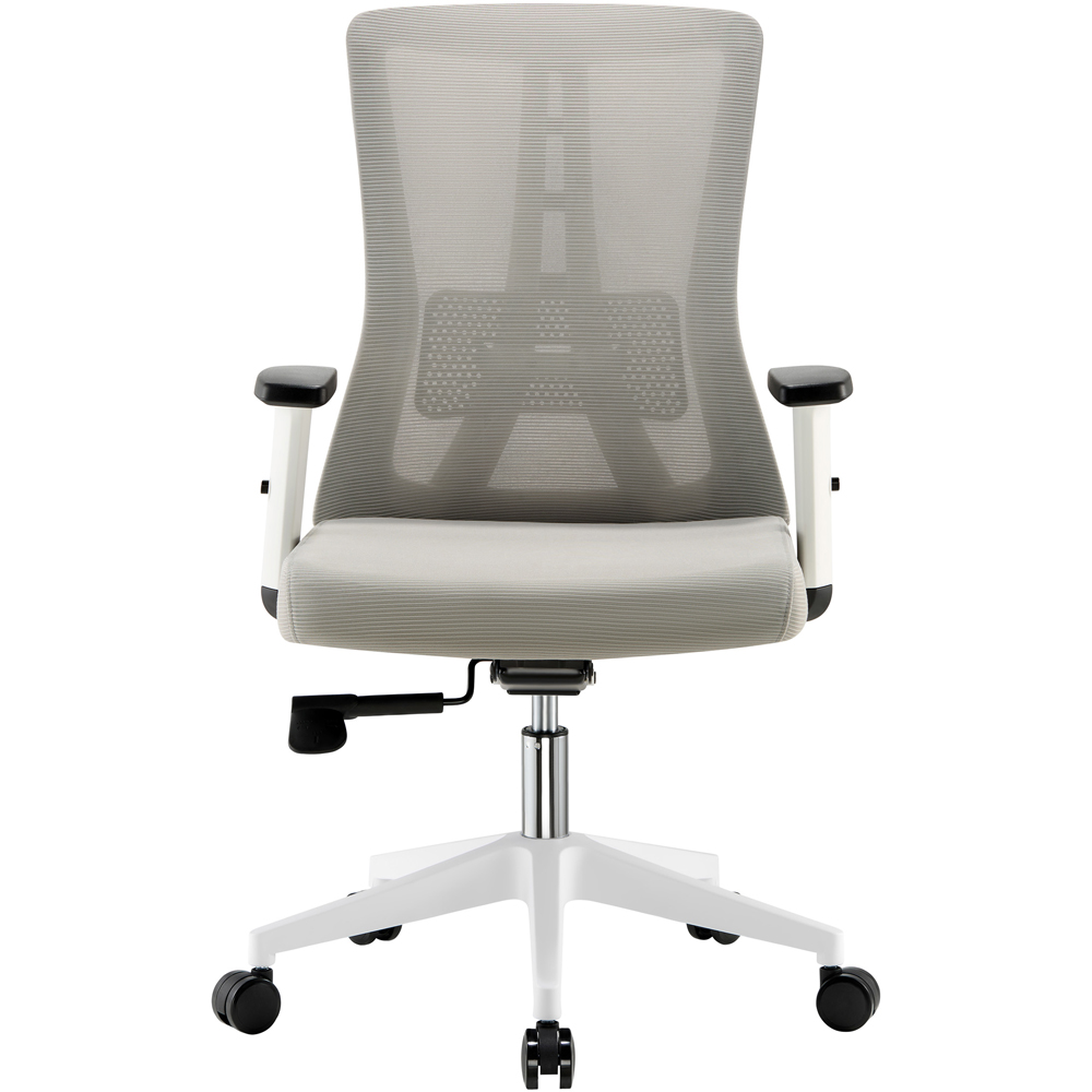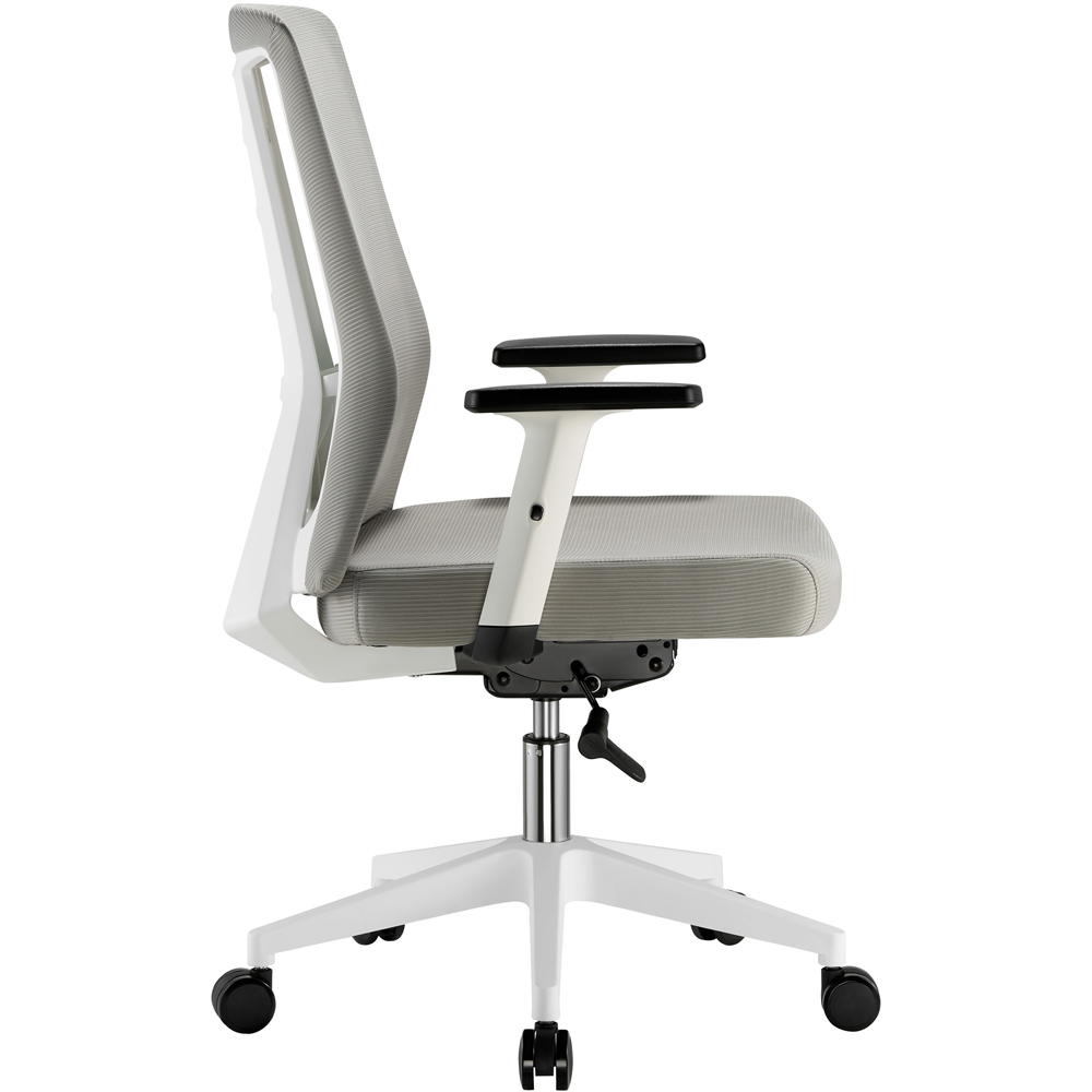 This ergonomic, mesh-backed desk chair, with adjustable armrests, provides exceptional support and comfort for home or commercial use. The breathable mesh back allows air to circulate, keeping you cool, whilst the adjustable lumbar support can improve posture and help prevent back strain and muscle fatigue. The contoured seat is padded with fire-retardant moulded foam covered with black fabric upholstery. 360-degree swivel capability with 60mm wheel casters allows complete manoeuvrability. The pneumatic seat height adjustment lever allows the seat to raise and lower to each individual's needs and locks or unlocks the tilt mechanism.