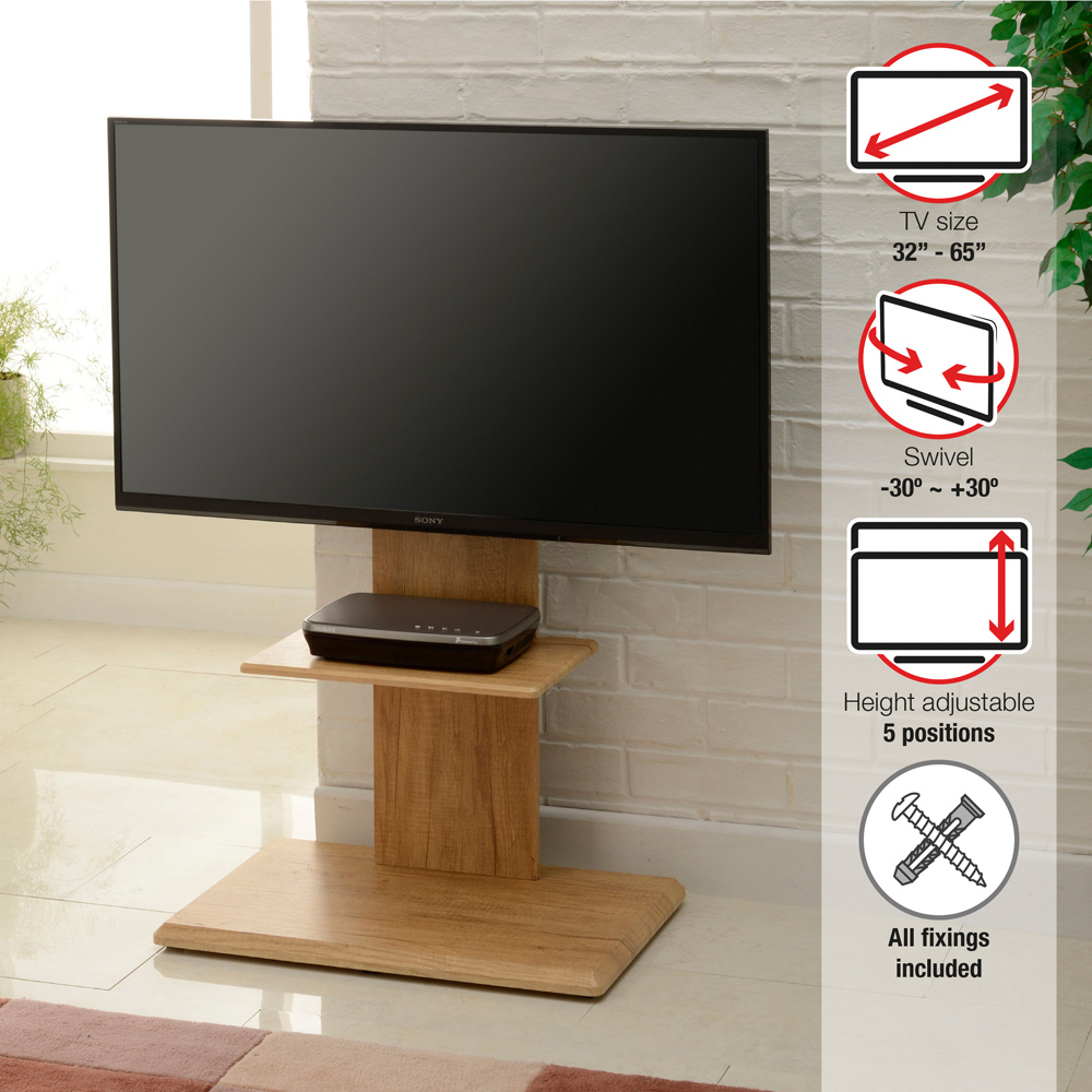 TTAP Single Shelf Oak Effect Floor Pedestal TV Stand with Swivel Mounting Bracket