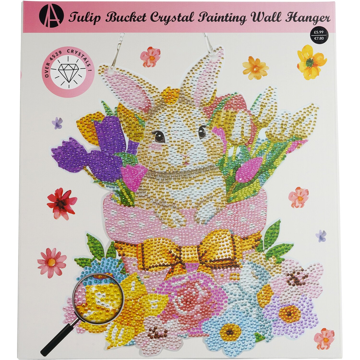 Adorn your home with handmade artwork with the Tulip Bucket Crystal Paint Wall Hanger. Including all the things you need; this wall hanger has a beautiful design featuring a bunny in a bucket surrounded by flowers. Creative and fun, just embellish it with bright gems and hang it on your favourite wall to make your space ready for Easter.