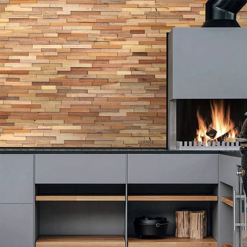 3d tiles are made using a mix of multiple hardwood blocks, each displaying a different tone of natural wood. The individually crafted blocks are bonded together to create a truly unique interlocking tile. Adding texture, and colour to a feature wall helps visually separate space in large rooms or focus attention in smaller areas.