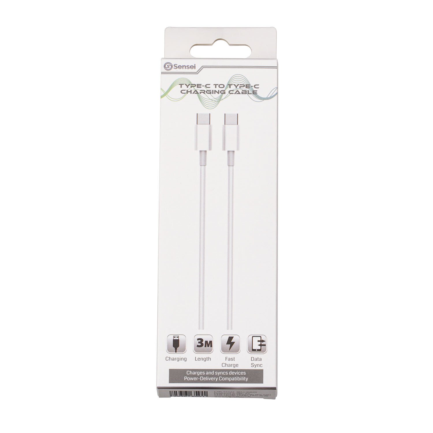Keep your devices charged no matter where you're with this Sensei Type-C to Type-C Charging Cable. Finished in white, this cable is ideal for 60W fast charging and syncing data between devices. Approximately three meters in length, it's an essential mobile phone accessory to carry along.