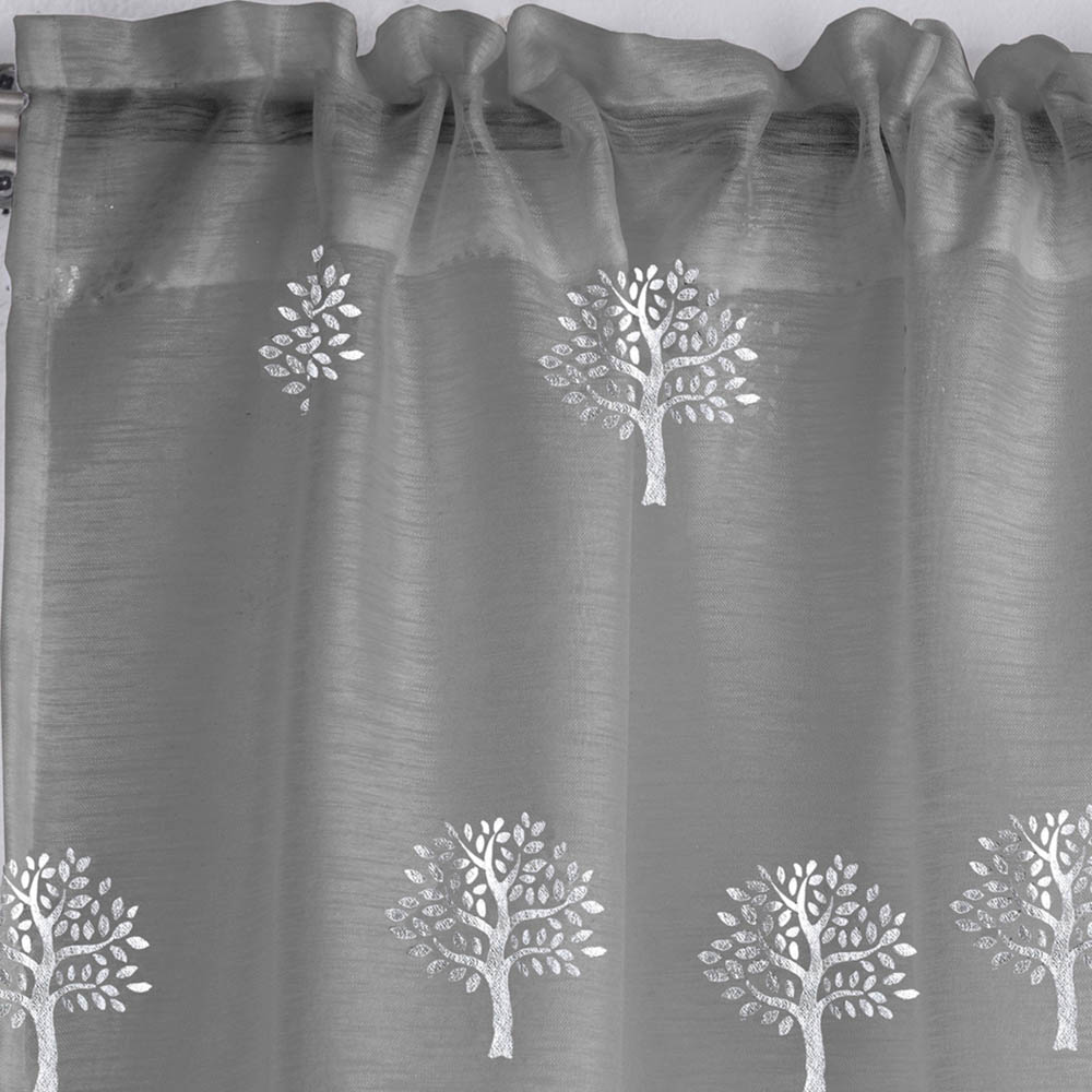 Elevate your living space with the modern allure of the "Birch" metallic tree print voile panel. This captivating window treatment effortlessly combines contemporary design and functionality. Crafted with meticulous attention to detail, the "Birch" panel features a linen-look ground that adds a touch of elegance to any room. The highlight of this panel is the striking metallic tree print, which infuses your decor with a sense of sophistication and visual intrigue. The intricate design and modern aesthetic make it a standout choice for enhancing your space. Not only does the "Birch" panel offer captivating style, but it also provides practical benefits. The voile fabric allows soft, diffused light to enter your room, creating a warm and inviting ambiance while ensuring privacy. It's an ideal choice for living rooms, bedrooms, or any area where you want to strike the perfect balance between natural light and comfort. With its easy-to-use rod pocket design, installing the "Birch" panel is a breeze. It fits most standard windows, allowing you to effortlessly update your decor. The high-quality fabric is easy to maintain, requiring minimal care to keep it looking its best. Transform your space with the contemporary elegance of the "Birch" metallic tree print voile panel. Let its captivating design and practical features elevate your home decor to new heights.