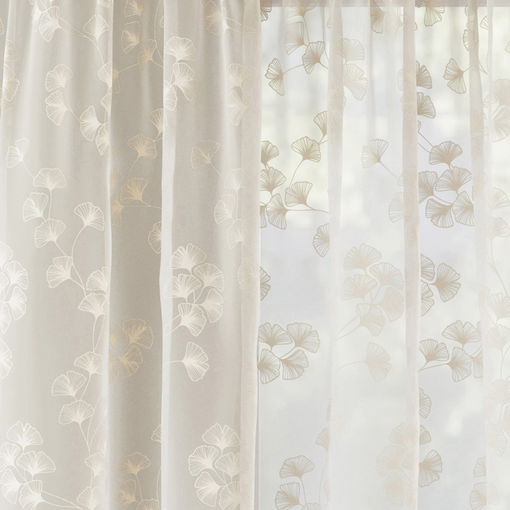 Uplift your space with this pack of 2 delightful Tyrone Textiles Delila Cream Trail Leaf Print Sheer Voile Panel Curtain 140 x 137cm. Designed to effortlessly complement any room, the carefully crafted floral print spreads soft, intricate blooms across the voile, creating a serene and inviting ambience. Made from high-quality voile fabric, these lightweight and breathable panels allow natural light to gently filter through, offering a perfect balance of privacy and brightness. The versatile slot top header makes installation a breeze—simply slide the panel onto your curtain rod or pole, and enjoy your transformed space. These floral print voile panels bring the beauty of the outdoors inside, adding a touch of sophistication to any room. The intricate design and modern aesthetic make them a standout window treatment, effortlessly complementing various interior styles, from modern and minimalist to eclectic and transitional. The leaf print on the voile fabric adds sophistication and visual interest, allowing soft, diffused light to enter your space and creating an inviting ambiance while maintaining privacy. Ideal for living rooms, bedrooms, or any area where privacy is desired, these panels offer the perfect balance of natural light and comfort. The panel comes with a rod pocket for quick and hassle-free installation, fitting most standard windows and allowing you to effortlessly update your decor. Additionally, the high-quality fabric is easy to maintain, requiring minimal care to keep it looking its best.