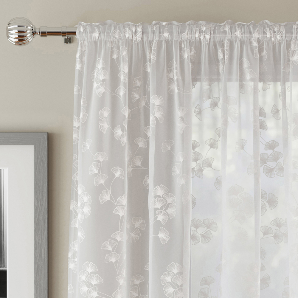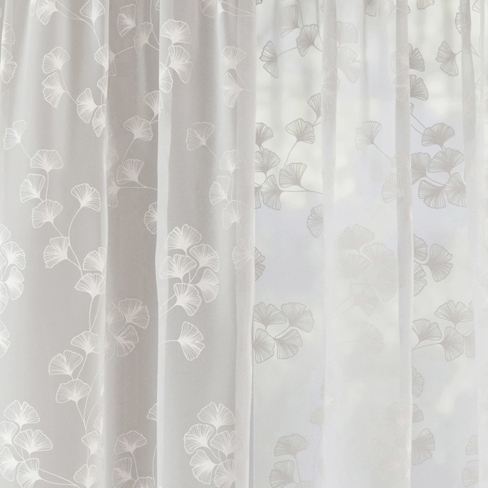Uplift your space with this pack of 2 delightful Tyrone Textiles Delila White Trail Leaf Print Sheer Voile Panel Curtain 140 x 229cm. Designed to effortlessly complement any room, the carefully crafted floral print spreads soft, intricate blooms across the voile, creating a serene and inviting ambience. Made from high-quality voile fabric, these lightweight and breathable panels allow natural light to gently filter through, offering a perfect balance of privacy and brightness. The versatile slot top header makes installation a breeze—simply slide the panel onto your curtain rod or pole, and enjoy your transformed space. These floral print voile panels bring the beauty of the outdoors inside, adding a touch of sophistication to any room. The intricate design and modern aesthetic make them a standout window treatment, effortlessly complementing various interior styles, from modern and minimalist to eclectic and transitional. The leaf print on the voile fabric adds sophistication and visual interest, allowing soft, diffused light to enter your space and creating an inviting ambiance while maintaining privacy. Ideal for living rooms, bedrooms, or any area where privacy is desired, these panels offer the perfect balance of natural light and comfort. The panel comes with a rod pocket for quick and hassle-free installation, fitting most standard windows and allowing you to effortlessly update your decor. Additionally, the high-quality fabric is easy to maintain, requiring minimal care to keep it looking its best.