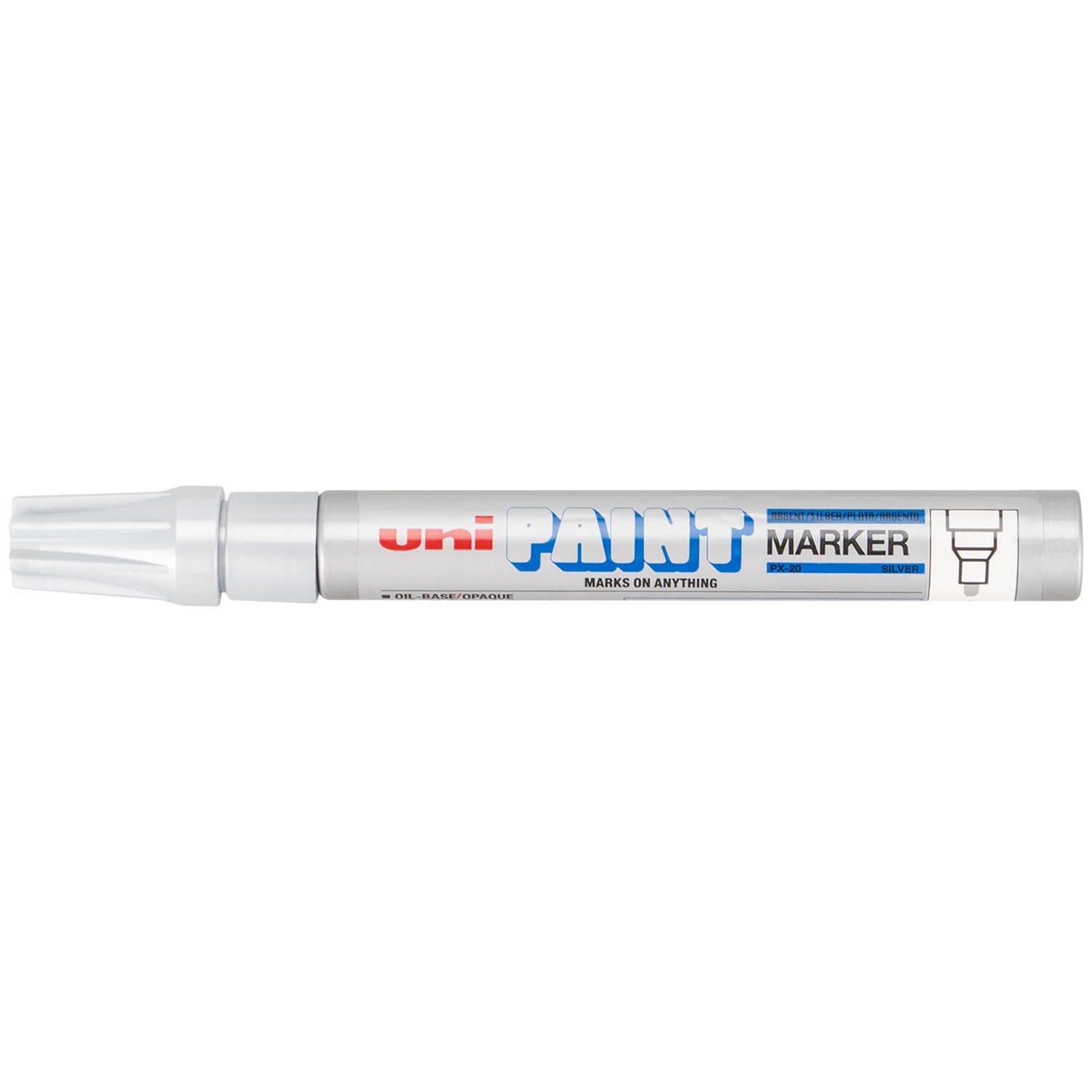 This Paint Marker Pen PX-20 Silver is a permanent silver marker which will write on metal, plastic, glass and fabric and other materials with ease. Use your imagination and go wild with the pictures you can create, or use them to make a mark on items that belong to you, this marker is ideal for all your needs.