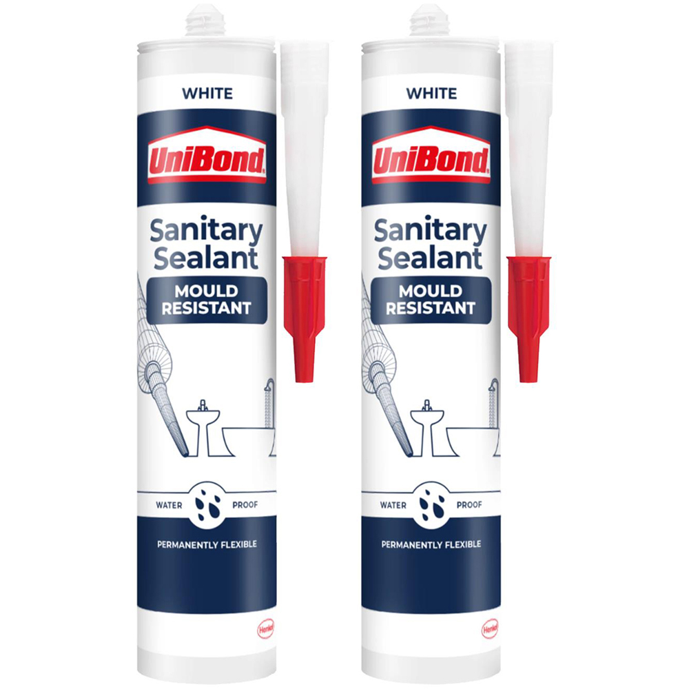 This UniBond Sanitary Anti-Mould is a one-component, ready-to-use, silicone sealant for sealing joints in warm, humid environments where there is a likelihood of mould growth. It contains a fungicide and is suitable for use around baths, toilets, wash basins, showers, kitchens, worktops and tiling joints. How to Use: All surfaces must be clean and dry, free from dust and grease or, anything which may be detrimental to the correct adhesion of the sealant. Residues of old sealant or other materials as well as mould on the substrate must be removed completely (if necessary, use a silicone remover). To get the best sealing results it is recommended to mask off the edges of the joint with masking tape before applying the sealant. Package Includes: 2x UniBond Sanitary Sealant Cartridge White, 274g.