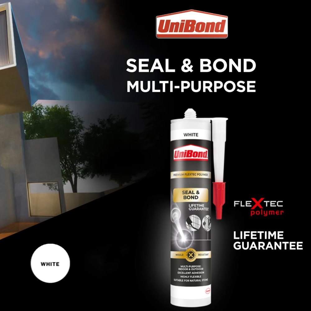This UniBond Seal and Bond is a premium quality, one-part, polymer-based joint sealant and multipurpose adhesive for indoor and outdoor applications. It also contains a fungicide for sealing joints in warm, humid environments where there is a likelihood of mould growing. How to Use: The joint width must be designed to suit the movement capability of the sealant. In general, the joint width must be > 10 mm and < 35 mm. A width-to-depth ratio of approx. 1:0.5 must be maintained. Fill deep joints with a PE foam ‘Backer Rod’ prior to applying the sealant. Apply adhesive onto the surface of one of the elements to be bonded: In spots to smooth uneven surfaces, in wave-like form for higher initial tack with large surfaces or in straight beads for smaller surfaces. Release gun after appliance to stop the adhesive flow. (Not valid for Foldable Gun DW111/120). Firmly fix items to be bonded into position with a twisting action. If necessary (e.g., heavy items and items under tension), support the items until cured. Items can be adjusted after application. The minimum thickness of the adhesive layer should be 1 mm to ensure ventilation. The sealant will be touch dry in 30 mins. Cures in approx. 24-48 hours at +23 degree Celsius for a thickness 2 to 3mm. Wait until the product is fully cured before applying loads or exposing it to water. Box includes: UniBond Seal and Bond Sealant Cartridge White, 389g.