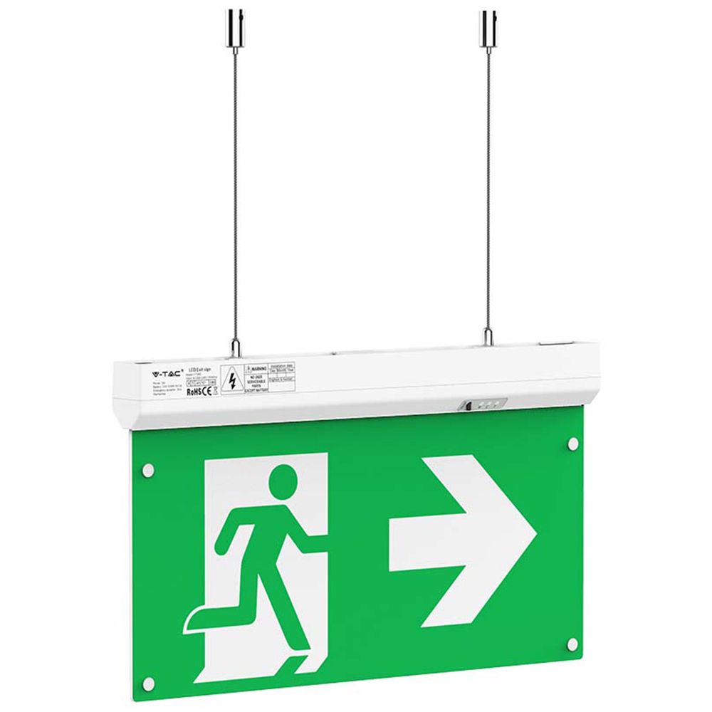 Stay safe and compliant with this energy-efficient four-in-one LED emergency exit light from V-TAC. It features a built-in self-test function and over three hours of emergency backup in case of a power cut. With four mounting options and interchangeable legends included, it’s easy to install wherever it’s needed. Bright 6000K cool white light. Built-in self-test with green indicator light. Over three hours of emergency backup. Maintained operation. Uses just 2.5W of power. Includes four mounting options, such as ceiling, wall, side wall, or suspended. 30m viewing distance (double-sided). Four interchangeable legends are included. Durable, lightweight design. 12-hour charging time. For indoor use (IP20 rated). Ideal for hallways, stairwells, and exit routes.