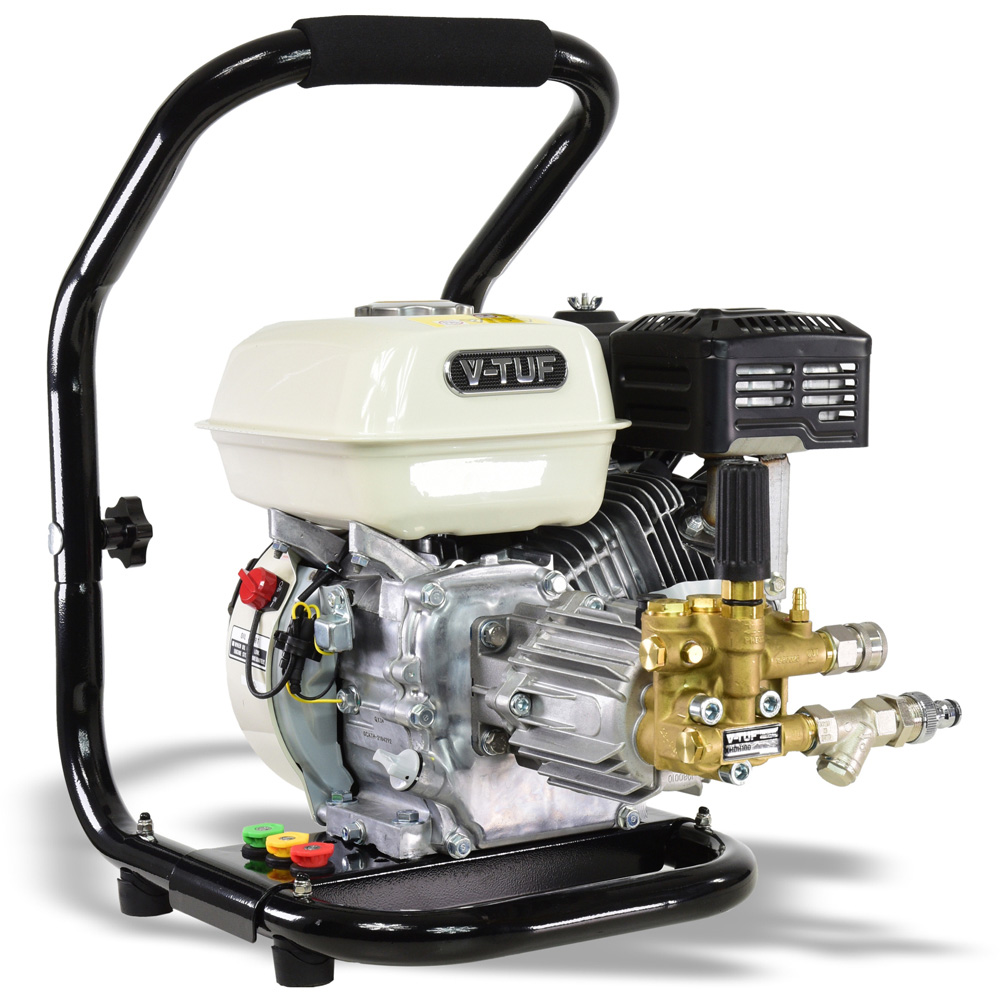 Top rated cleaning power and 100% reliability, you won't find better Honda pressure washer in its class; the V-TUF TORRENT GPT200 is the choice of many professional cleaners. Honda's reputation of quality engines only continues to improve. The V-TUF TORRENT GPT200 is tough, powerful, and the most reliable cleaning companion! V-TUF TORRENT GPT200 power washers offer 190 bar Working pressure, 12l/Min, with a 6.5HP petrol Honda GP200 engine , trolley mounted on a heavy-duty manoeuvrable frame. Its all muscle, all power, all results! One of the most Compact, and reliable yard cleaners on the market. Simply All Muscle! Ideal for cleaning large driveways, paths, patios, car parks, plant and machinery, clean down muddy roads on building sites, cleaning down brickwork, boats, yachts, ships, tractors and farm implements and much more. V-TUF TORRENT GPT200 is a product of serious collaboration with big end users and is commonly used for heavy duty and demanding tasks. Some of the key features include: Modern ergonomic accessories, latest Honda commercial engine technology for efficient performance, and low noise levels, oversized 190bar Max rated pump, mobilised by a simple, robust chassis guarantees many hours of enjoyable cleaning performance. Service Kits and Replacement Parts for Pump: Valve kit: VTPKIT2869, Water Seal kit: VTPKIT2167, Oil Seal kit: VTPKIT2591, Piston kit: VTPKIT2513, and Pump oil: PL500. Industries: Contract Cleaners, Warehousing and Distribution, Agriculture, Schools and Education Centres, Hospitals, Large Home and Estate Owners, Gardeners Serious DIY'ers, Pressure Washing Hobbyists, Boat and Yacht Owners, Event Centres and Leisure Parks. Other Areas of Application: National Multi-Storey Car Parks, Tractors, Harvesters, Cultivators, Ploughs and Trailers, Cattle Barns, Building and Floor Restoration Services, Drain Blasting and Cleaning, Courtyards: Schools, Universities, Hospitals, Shopping Centres, Sports Grounds, Driveways, Paths and Patios.