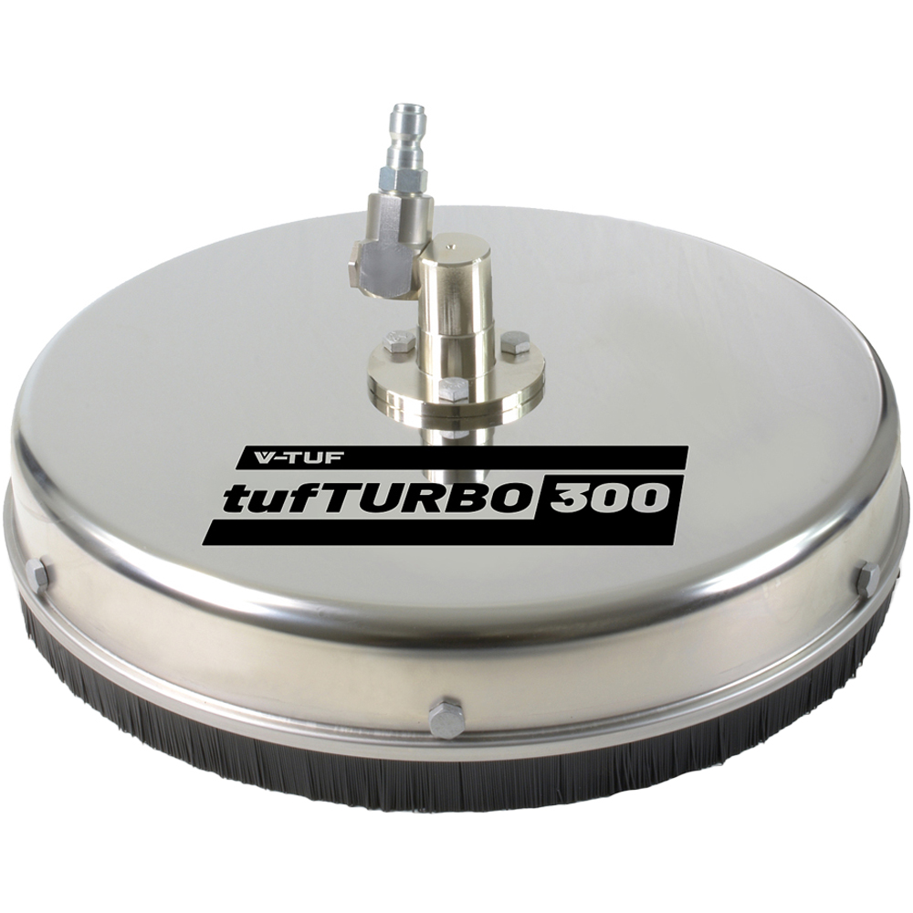 V-TUF H1.002TT tufTURBO 300 Surface Cleaner is designed for fast, precise & operator friendly cleaning. The durable design and construction of both the hood and spinner assembly guarantees an excellent life of hard work. Features Include: Easily Collapsible for Transport, Replacement Brush Skirt, One Piece Non Corrosive Hood, Robot Welded Rotor Arm and Self Lubricating Spindle. The sealed swivel prevents dirt and grit splashing back into the swivel. Rotary Surface Cleaners (sometimes referred to a Whirl-A-Way or whirlaway ) are best known for: V-Spin Technology - High Speed Stainless Steel Swivel Ideally suited for industrial and commercial cleaning tasks Impact Resistant Housing Inlet: DuraKLIX SSQ Plug - Connect with SSQ Lance Kit Highly Corrosive Resistant (Stainless Steel Frame & Body). Compatible with all V-TUF Industrial Petrol, Diesel & Electric Power Washers: Petrol TORRENT Pressure Washer Range Diesel TORRENT Pressure Washer Range Petrol DD Pressure Washer Range Petrol GB Pressure Washer Range Electric RAPID Pressure Washer Range. VTUF110, VTUF240, VTUF415-250 Industries: Block Paved Areas, Roof Tiles & Roofs, Public Walkways & Courtyards, Commercial Yards, Concreted Floor Areas, Construction & Building Sites, Hire & Rental, Car Parks, Parks & Public Walkways, Facilities Management, Manufacturing & Beverage, Heavy Industry, Contract Cleaners, Warehousing & Distribution, Agriculture, Schools & Education Centres, Hospitals. Areas of Application: Construction Site Equipment; Cement Mixers, Diggers, Dumpers, JCB & CAT Machines etc. Cement Plant Foundries, National Multi-Storey Car Parks, Tractors, Harvesters, Cultivators, Ploughs & Trailers, Cattle Barns, Building & Floor Restoration Services, Drain Blasting & Cleaning, Courtyards: Schools, Universities, Hospitals, Shopping Centres, Sports Grounds, Driveways, Paths & Patios, Boats, Yachts & Ships.
