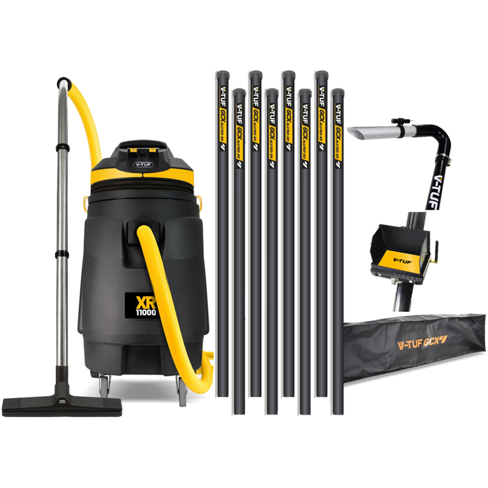 The Large, Rugged, Durable commercial Wet & Dry XR11000 Vacuum Cleaner has proven to be the best rated dirt cleaning companion, in a huge range of applications, from cleaning up flooded buildings, to building restoration services, and general site clear up. The 240v XR11000 is an elite Wet And Dry Vacuum Cleaner with dual powered independently controlled powerful 'twin impeller' turbine motors so you can choose your suction power by having any number of motors on at any given time. The washable filters which gives you the option for use in both dry and wet applications for cleaning a vast range of materials of liquids, solids, and dust. Simply wash the filter with warm water and continue cleaning. The robust high impact Rota moulded tank gives you the assurance of a long-lasting heavy-duty vacuum, that is built to withstand the toughest of working conditions, for high demanding tasks. With our unique V-TUF high-efficiency HEPA washable filter system which provides extra protection to the motors from dust. To clean the filters, wash the filter with warm water, letting it dry, and use it again and again. The XR11000 is the professional’s choice on choosing the best wet and dry vac, with the huge capacity of a 110L tank, long life motors, being the effective cleaning companion to anyone needing to remove wet and dry substances. The features on this machine are answers to the requests of the cleaning market for a large industrial, bagless 'all-rounder' vacuum cleaner, that is easy to manoeuvre, and able to cope with vacuuming a mixture of wet and dry material, such as drain unblocking, flood & spill restoration, carpet cleaning, car valeting, and general garage, and workshop cleaning jobs, and all jobs needing a super powerful suction. It also has a drain hose for easy disposal of liquids - at the rear of the tank. If you do need bags you can order VTVS055 Industries: • Facilities Management, • Contract Cleaners, • Manufacturing, • Retail & Shopping Centres, • Schools, Universities & Colleges, • Warehousing & Distribution, • Leisure Centres, • Engineering, • Restaurants & Cafes, • Automotive Workshops, • Agriculture. Areas of Application: • Hard Floor Cleaning, • Carpet Cleaning, • Unblocking Sinks, • Extracting Moisture From Curtains & Furniture, • Carpet & Upholstery Spot Cleaning, • Cleaning a Garage/Workshop, • Clearing up Broken Glass, • Clean up Liquids / Spillages, • Vacuum Pet Hair, • Ventilation Cleaning, • Office Cleaning, • Gutter Cleaning, • Exhibition Main Hall Cleaning, • Farm Buildings & Grain Barns, • Flood & Spill Restoration. USEFUL TIP: How to maintain and clean your artificial grass lawn. ARTIFICIAL GRASS LAWN cleaning & maintenance. Use the V-TUF vacuum with the sweeping head moving up and down (like you push your lawn mower) which lightly agitates and sucks out a build up of dirt in the grass. This will keep your turf looking fresh. You can vacuum in wet or dry conditions. If the artificial turf has a lot of leaves or debris, ‘sweep’ the debris into piles with the vacuum sweeper head. Hose your lawn down with water a couple of times a year or when necessary. We recommend the V-TUF WASHFLEX PRO Hose to do this. The British weather will do the rest! If you choose to use a pressure washer to clean the grass we suggest you spray the grass gently using the SSQ BLACK LP jet. The V-TUF V5 Pressure Washer is an example. Do not try cleaning the grass like you would a patio as this could damage the grass fibres and could also damage the base of the lawn