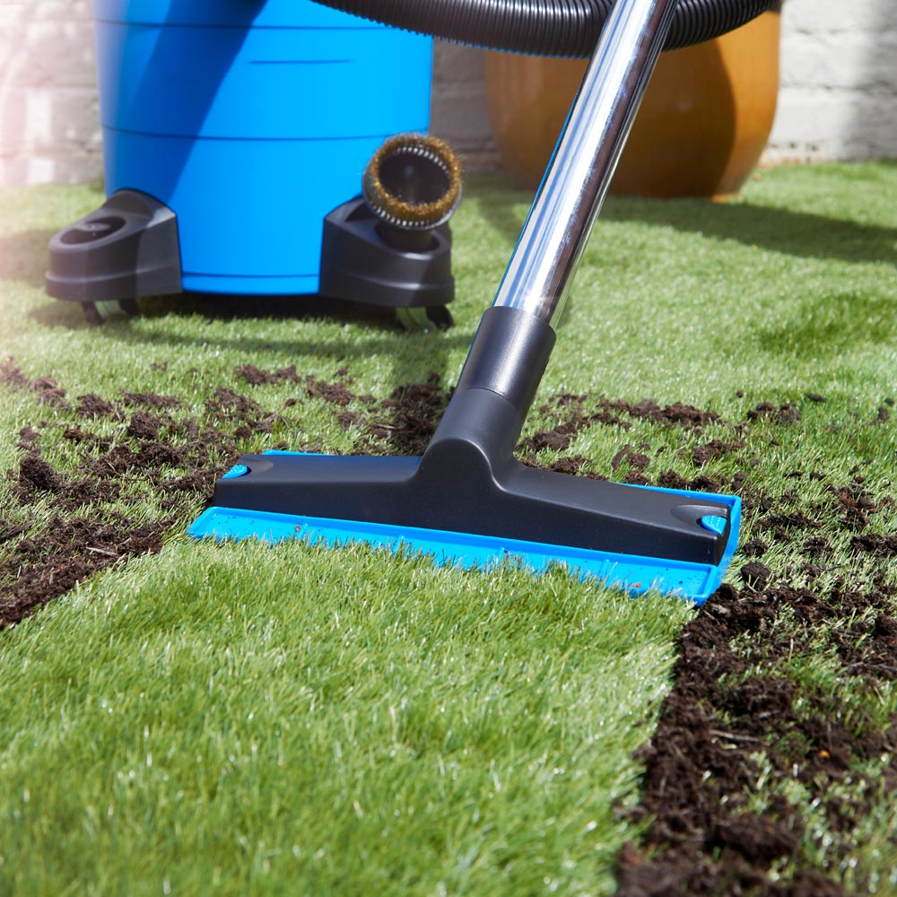 The Vacmaster Artificial Grass Wet and Dry 18L Vacuum Cleaner is the first wet and dry vacuum cleaner designed specifically for cleaning artificial grass, patios, pathways, driveways, decking and other outdoor spaces. Suitable for all artificial lawn and AstroTurf surfaces, this patented Artificial Grass Tool is designed to be gentle on your lawn but tough on ground-in dirt. Innovative moulded combs lift away debris from the surface, while nylon brushes dislodge trapped dirt. It comes with a brass brush tool for removing moss and weeds from stonework and an integrated blow function for switching the vacuum into a powerful garden blower. The WD 18 AG artificial lawn cleaner is designed to vacuum mud and dirt directly from your lawn, even when it's wet. Buy with the confidence of knowing that your new tool comes with a two-year manufacturer's guarantee.
