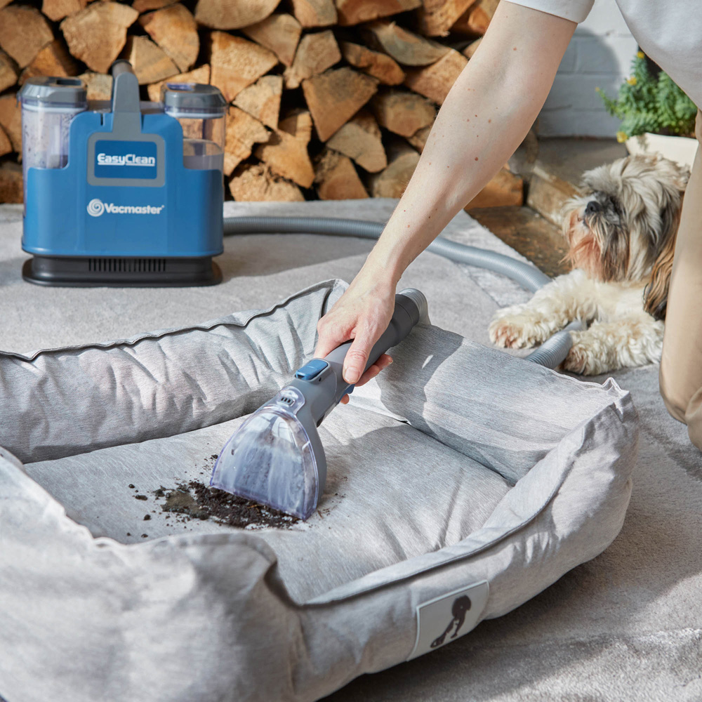The Vacmaster EasyClean Up Spot Cleaner is your ultimate ally for those cleaning emergencies, quickly lifting spills and stains from carpets and upholstery. From spilt drinks on the stairs to muddy paw prints in the car, the EasyClean Up rises to the challenge. At just 3.5 kg, this compact, small carpet cleaner is easy to store and quick to grab for on-the-spot clean-ups. With a powerful 500W motor, high-pressure spray nozzle and tough stain tool, it effortlessly tackles messes across multiple surfaces and into hard-to-reach places. Fully removable attachment covers can be easily maintained, preventing unpleasant odours, while the included cleaning solution keeps your home and car stain-free and refreshed. Put stains on the spot and effortlessly wash them away with the Vacmaster EasyClean Up.