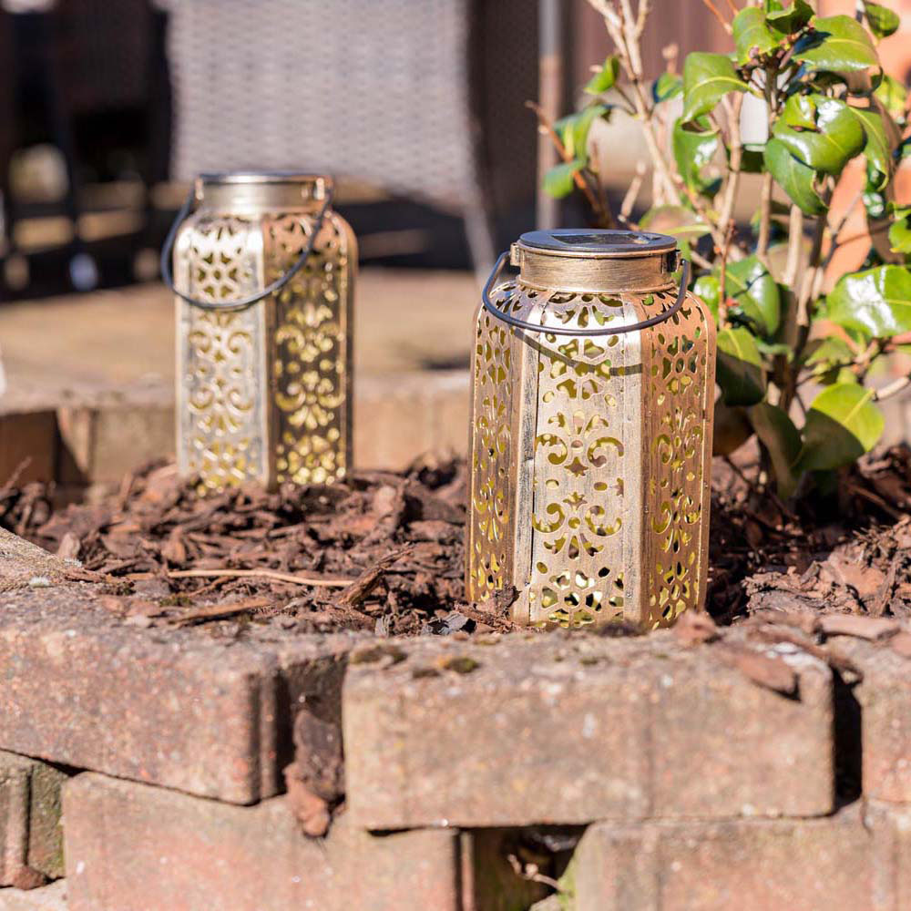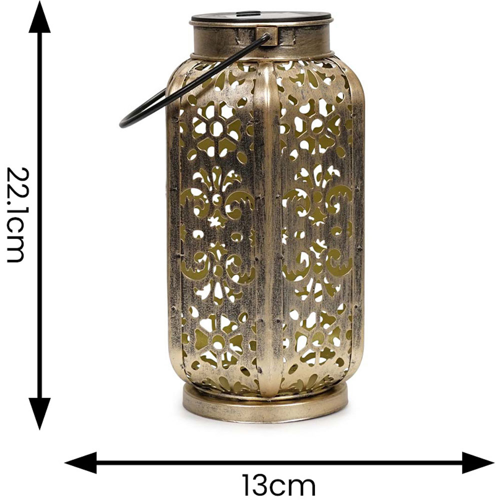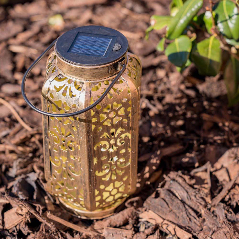Give your garden a welcoming glow with ValueLight Solar Antique Brass Moroccan Style Outdoor Lantern. Perfect for setting the mood on summer evenings or brightening up those dark winter nights. This eco-friendly solar-powered lantern features a Moroccan design base in an antique brass finish. It can be easily placed on your terrace, or balcony or used as table decorations. Embrace the beauty of the night and transform your garden into an elegant retreat with this stunning Moroccan lantern. Simply place the solar-powered light in a sunlit area during the day, and watch it come to light as the sun sets.
