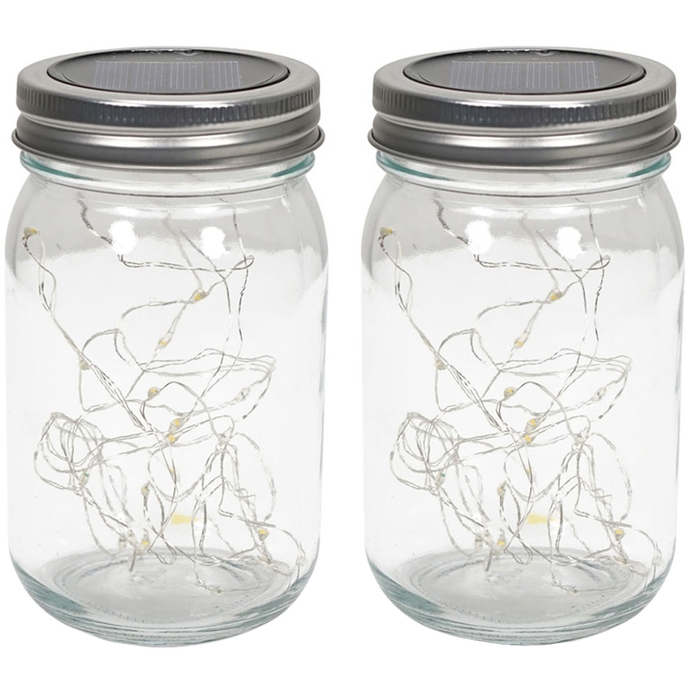 ValueLight Solar Jam Jars with Integrated LED Fairy Light Pack of 2
