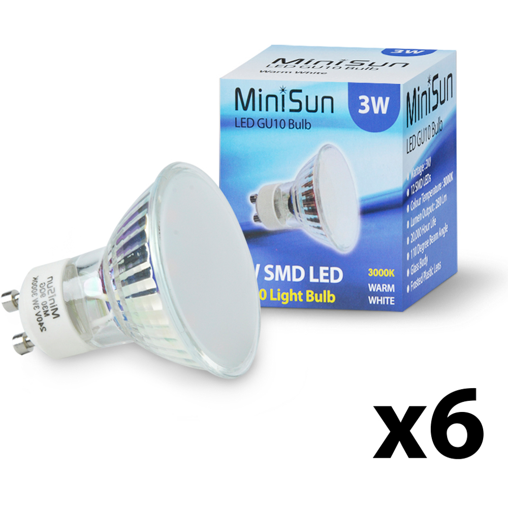 These ValueLights 3W 3000K Warm White GU10 Spotlight LED Light Bulb 6 Pack are made to top standards, making them a great and reliable option for replacing old halogen lamps. They’re non-dimmable, glass-bodied GU10 bulbs, perfect for spotlights, wall lights, and downlights. They’re super affordable to run, using just 3 watts of power, and with a 20,000-hour lifespan, they’ll save you a lot of money over time. Perfect for kitchens, dining rooms, living rooms, hallways, bedrooms, and pretty much anywhere else!
