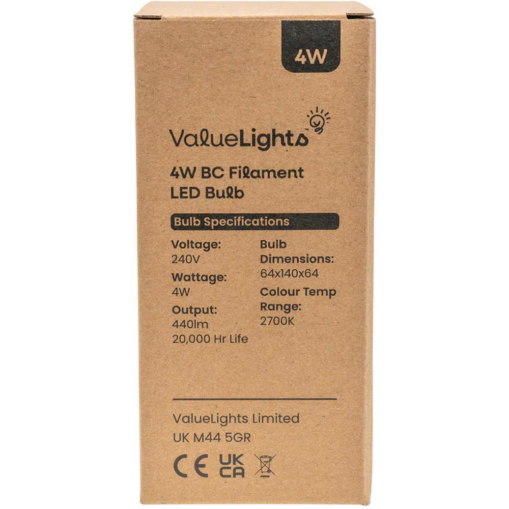 These ValueLights 4W 2700K B22 Vintage Warm White Filament Amber Pear LED Light Bulb 3 Pack has a beautiful amber tint and uses up to 80% less energy than regular bulbs, all while giving off the same warm white glow. They’re perfect for living rooms, bedrooms, hallways, and dining areas, and they also work great in places like hotels, period homes, theatres, or TV and film sets.