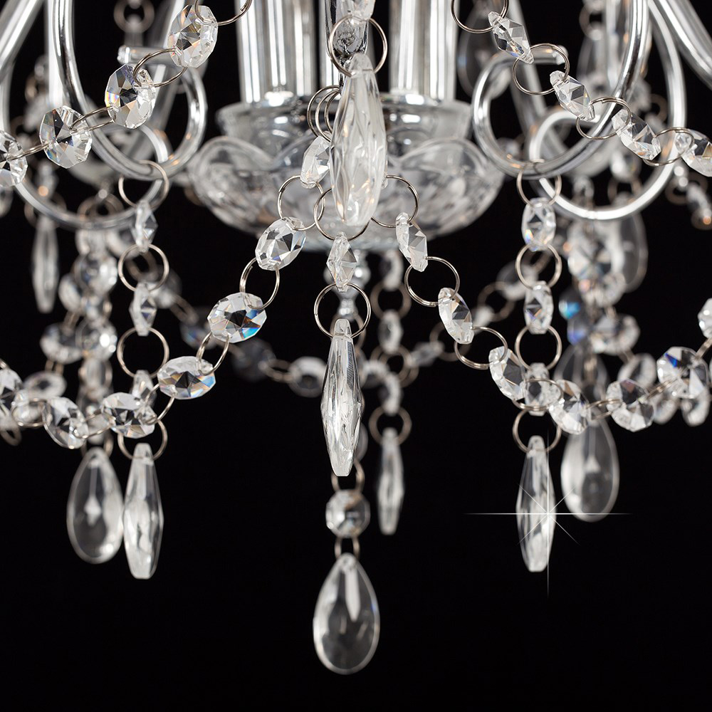 Add a flamboyant touch to your home decor with the ValueLights 5 Way Crystal Droplet Chandelier. This chandelier features clear crystal droplets that shimmer and reflect the light with a silver chrome finish. It is perfect for living rooms and hallways to brighten up the interior space and enhance the beauty. It can be easily attached to your ceiling to illuminate your interior space. This chandelier is ideal for all types of modern and traditional interior spaces. Dimensions: 58 x 43cm.