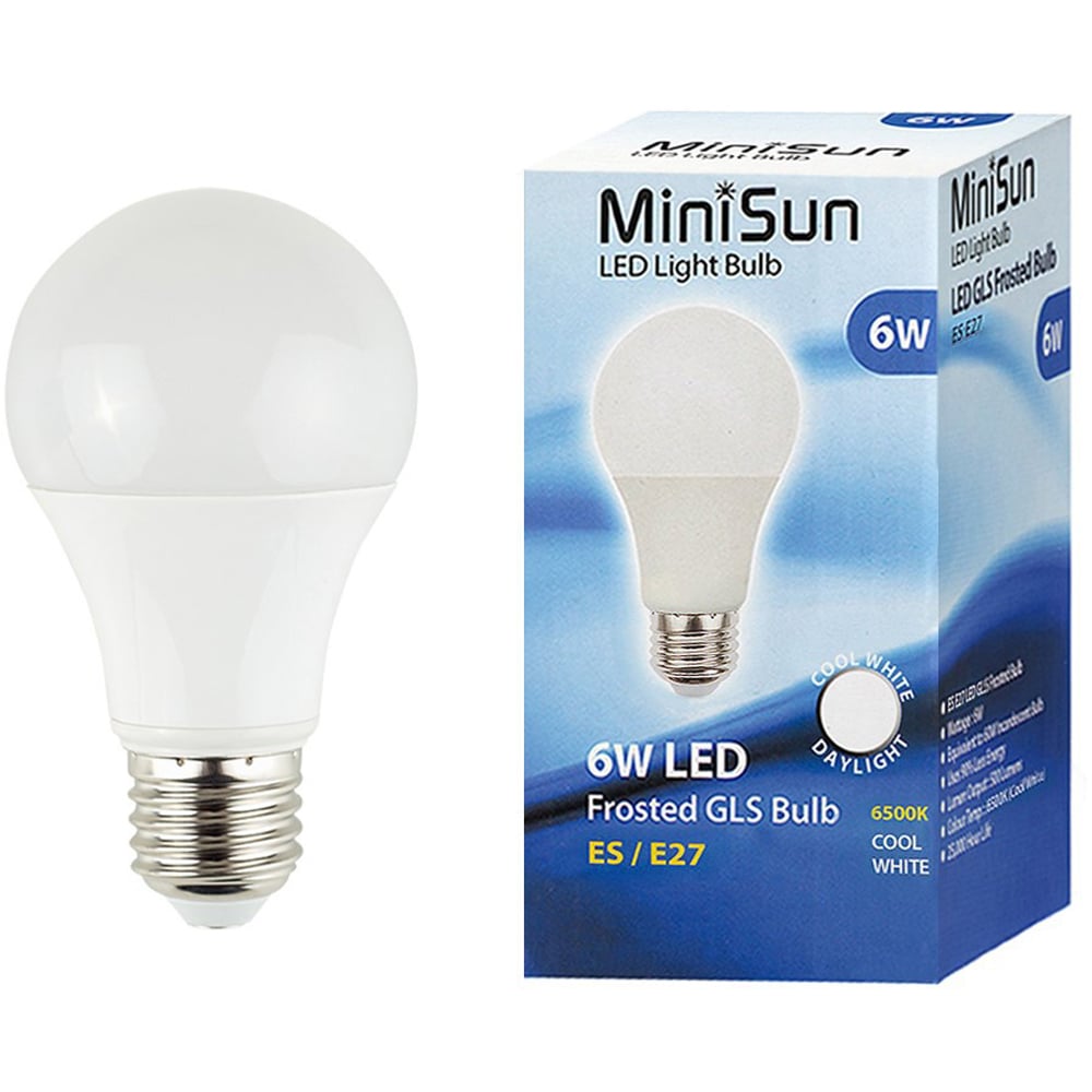 These 6 high-quality thermoplastic-bodied bulbs use the latest LED technology. They're super energy-efficient at just 6W, yet they provide the same light as a 60W standard bulb! Built with top-quality LED chips, these bulbs deliver bright, reliable light. They're also low-cost to run, using just 6 watts of power, and last up to 20,000 hours—helping you save money in the long run.