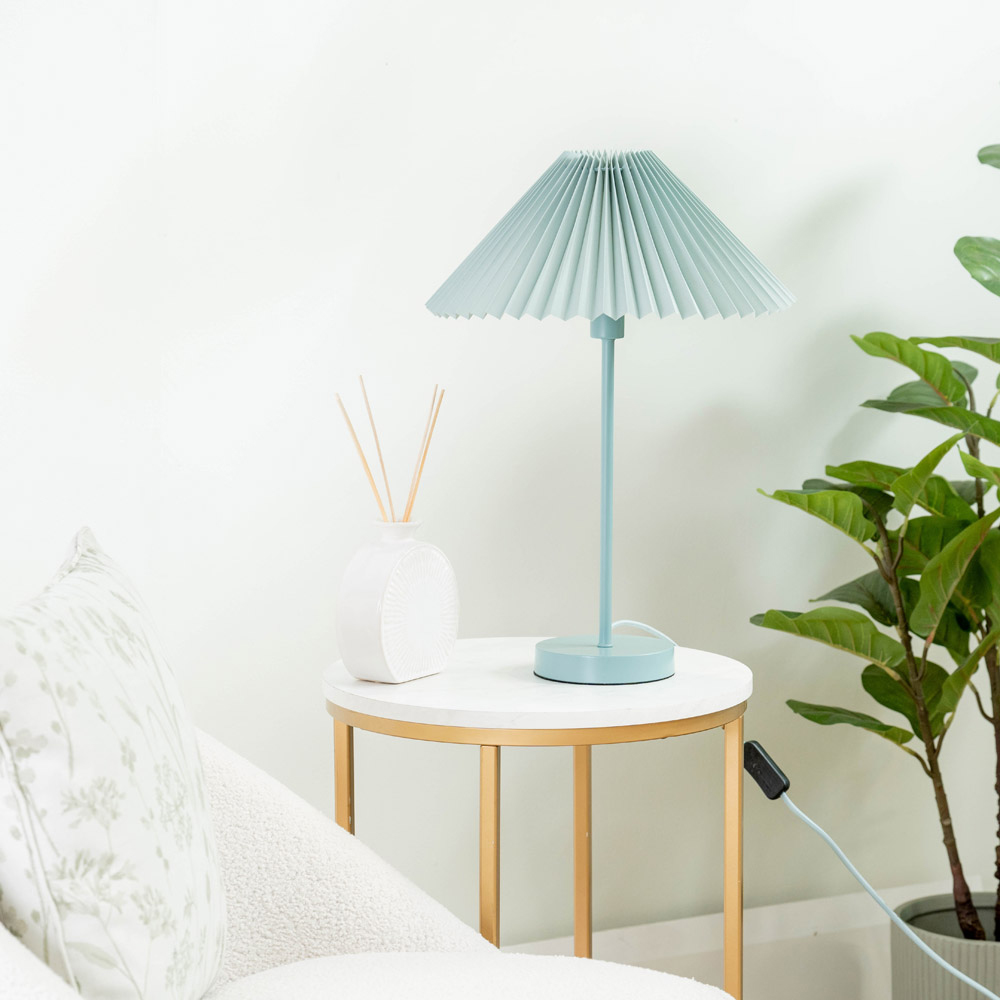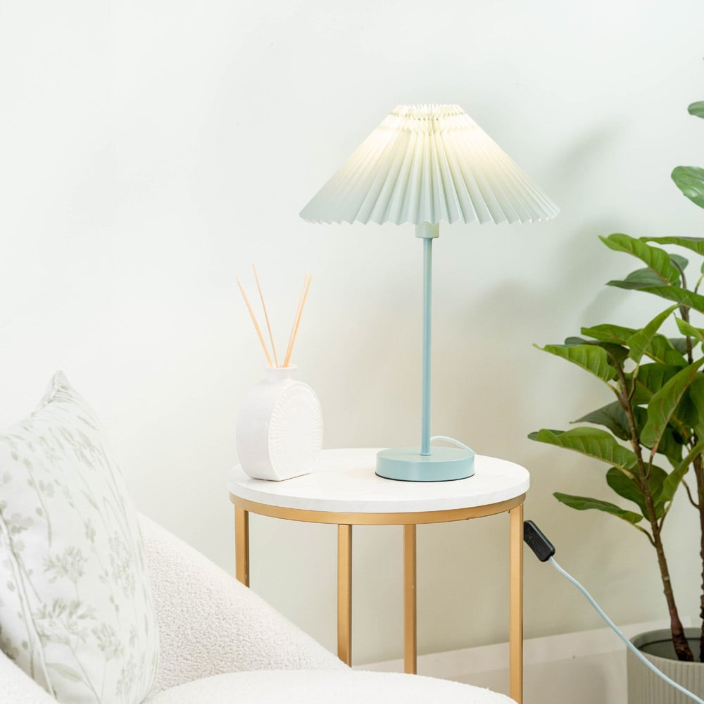 Introduce a simple yet impactful addition to elevate your space with the ValueLights Akira Blue Pleated Shade LED Table Lamp. As for the table lamp, it's a subtle yet impactful addition to any home. Its minimal and slender design allows it to fit seamlessly into tight corners while contributing significantly to the overall ambience of a room. This delicate table lamp also comes with a paper-pleated shade. Maintaining it is a breeze - simply wipe it with a clean, dry cloth. This table lamp also has a 12-month warranty.
