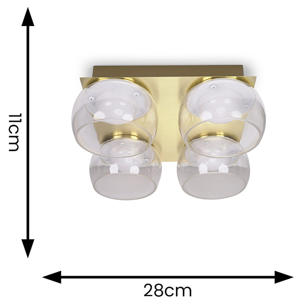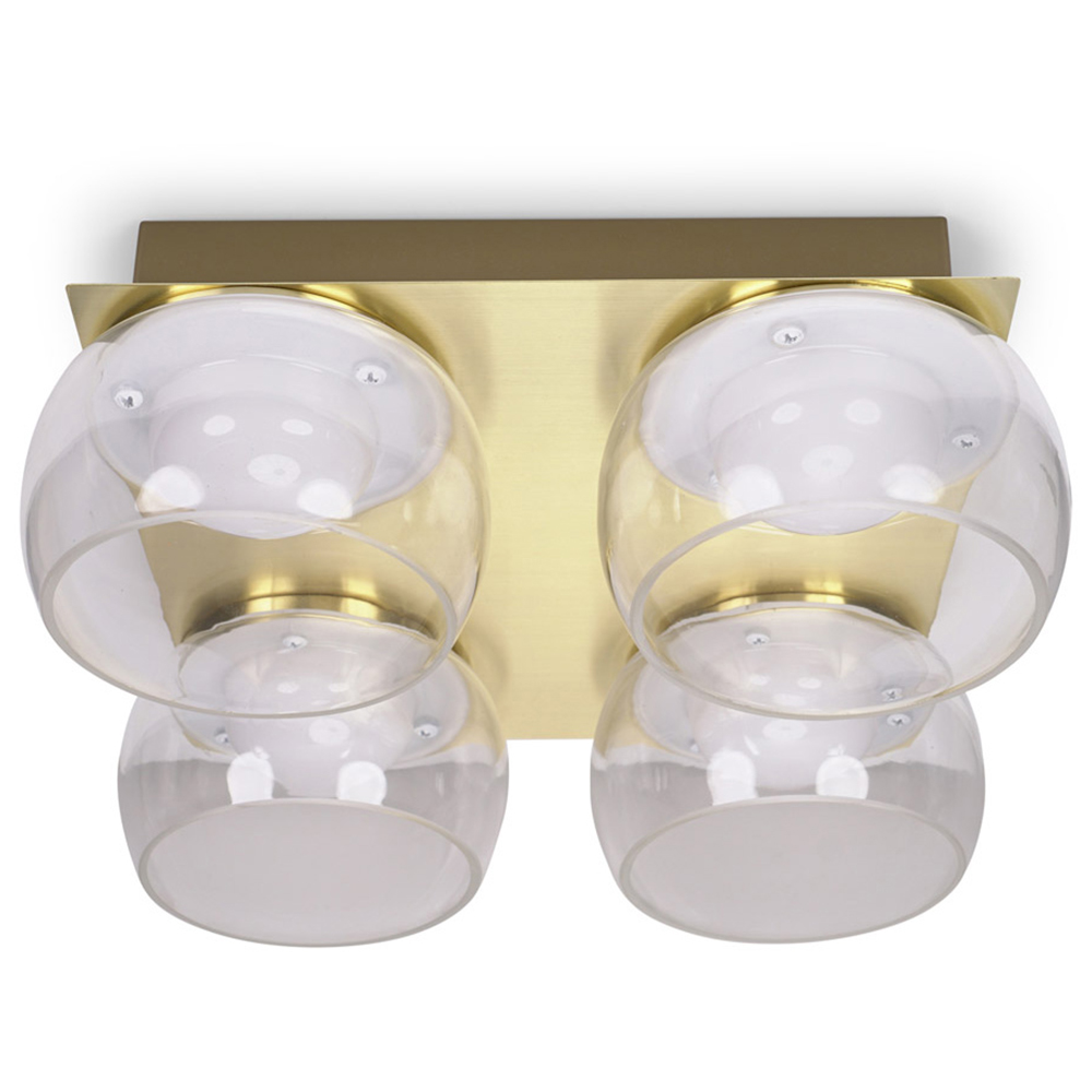 Introduce a contemporary element to your home décor with this four-way ceiling light fitting. Suiting any living room, bedroom or bathroom this ceiling light features statement metal with glass shades. The integrated LED bulbs give off a warm white glow, perfect for creating a soft ambience. With a perfect balance of style and functionality, this light brings a touch of modern sophistication to any space. Available in a choice of matt black finish with smoked glass, chrome finish with clear glass, or matt gold with clear glass.