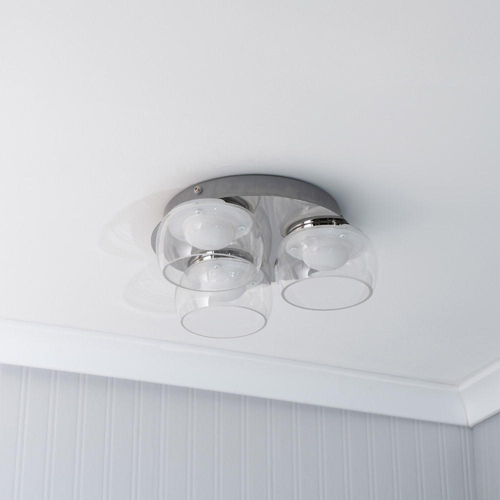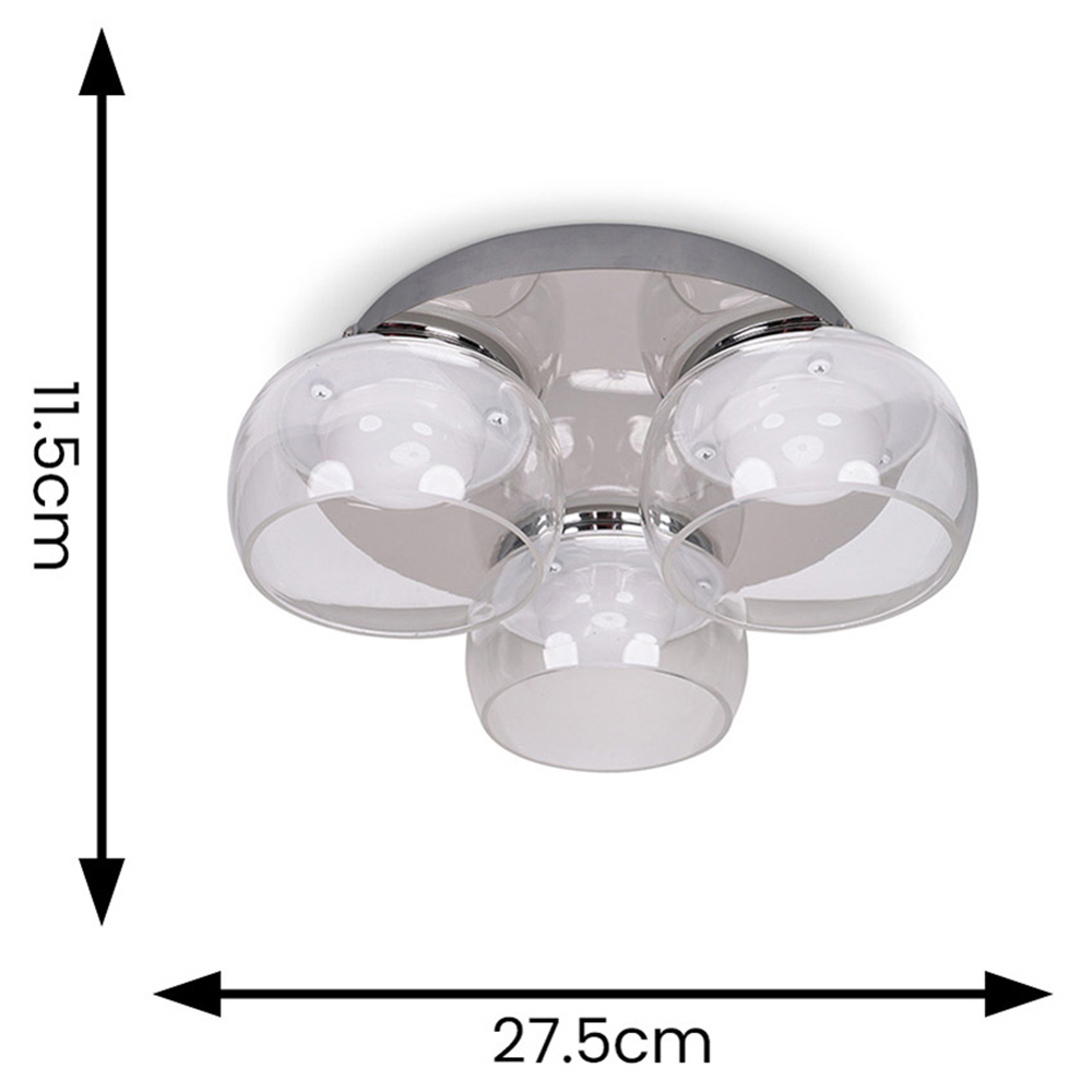 Introduce a contemporary element to your home décor with this three-way ceiling light fitting. Suiting any living room, bedroom or bathroom this ceiling light features statement metal with glass shades. The integrated LED bulbs give off a warm white glow, perfect for creating a soft ambience. With a perfect balance of style and functionality, this light brings a touch of modern sophistication to any space. Available in a choice of matt black finish with smoked glass, chrome finish with clear glass, or matt gold with clear glass.