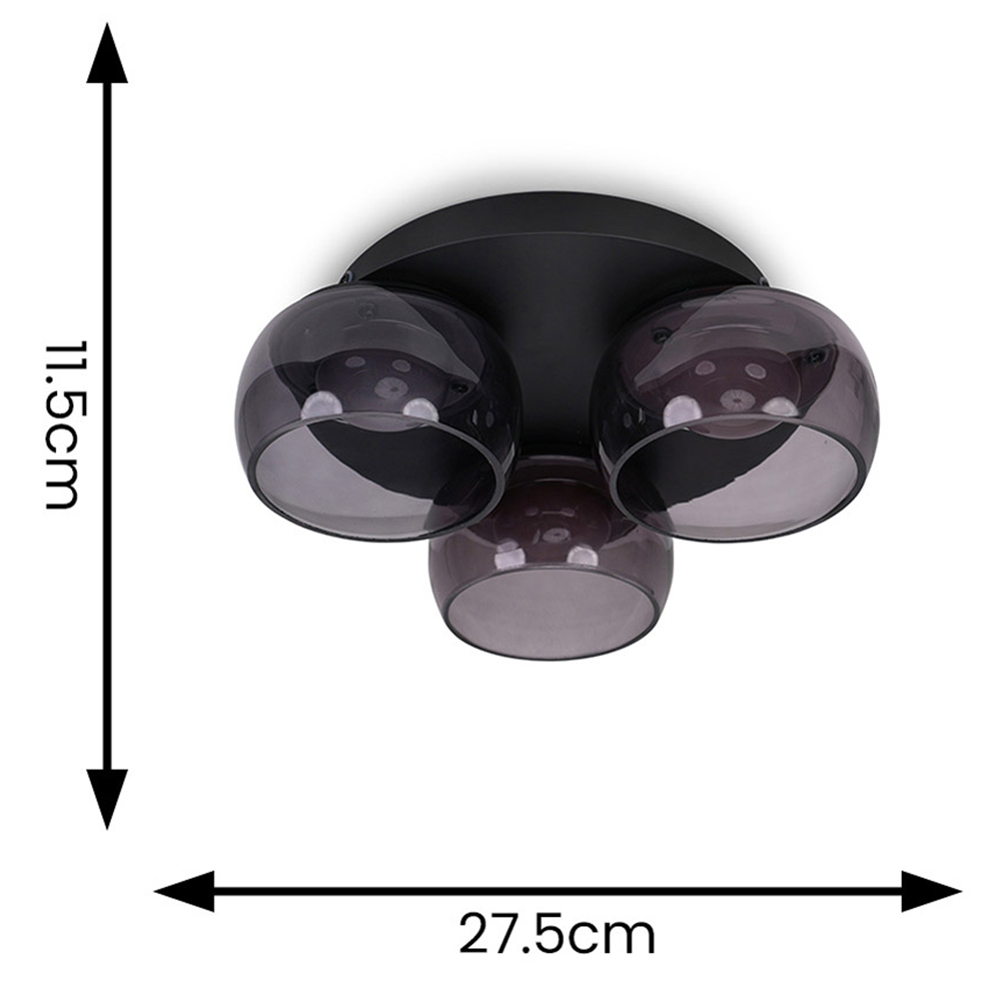 Introduce a contemporary element to your home décor with this three-way ceiling light fitting. Suiting any living room, bedroom or bathroom this ceiling light features statement metal with glass shades. The integrated LED bulbs give off a warm white glow, perfect for creating a soft ambience. With a perfect balance of style and functionality, this light brings a touch of modern sophistication to any space. Available in a choice of matt black finish with smoked glass, chrome finish with clear glass, or matt gold with clear glass.