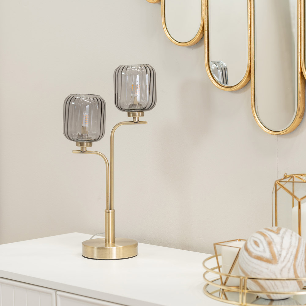 Decorate your home with the ValueLights Amelie 2-Way Ribbed Glass Gold Stem LED Table Lamp. This two-way table lamp from the Amelie collection features a gold finish. It doubles the lighting power to illuminate the space with a subtle glow and style. This ribbed glass table lamp adds an art of deco sophistication to your space. It features a versatile design, adding a finishing touch to your living room, bedroom or hallway.