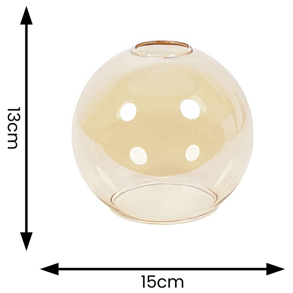 Bring a touch of modern elegance to your room with the ValueLights Bellamy Amber Glass Lamp Shade Small. This sleek globe-shaped shade is crafted from amber glass and beautifully complements a variety of interior styles, while evenly diffusing light. This shade looks stunning whether the light is on or off, and it can be easily fitted onto existing ceiling light sockets without the need for wiring. Dimensions: H13 x Dia15cm.