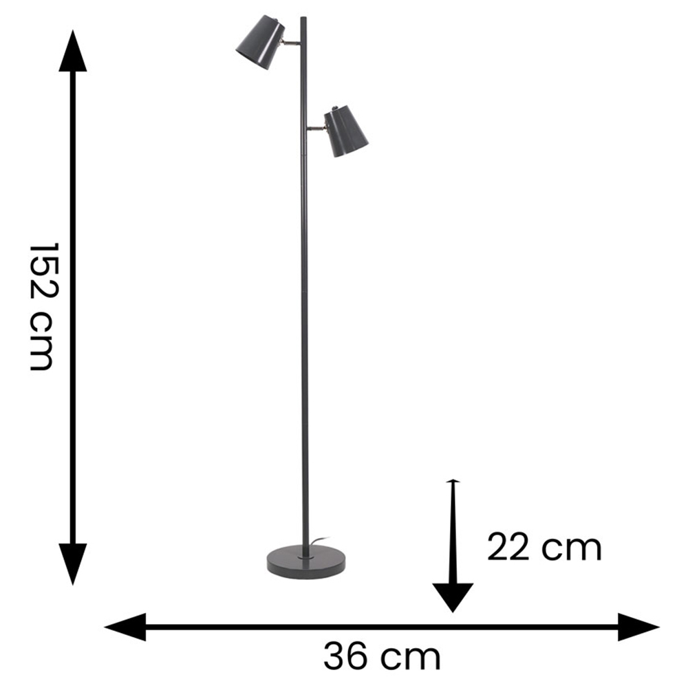Add a classy touch to your home decor with the ValueLights Bibi Charcoal Grey 2 Way Adjustable LED Floor Lamp. This metal lamp features two adjustable lights to personalise the lighting according to your preference. This lamp also features a sleek stem with a sturdy and stable base. It comes with LED bulbs to enhance and brighten up your interior space. It has a smooth finish and can be wiped with a clean dry cloth for easy maintenance. This floor lamp comes with a one-year warranty.