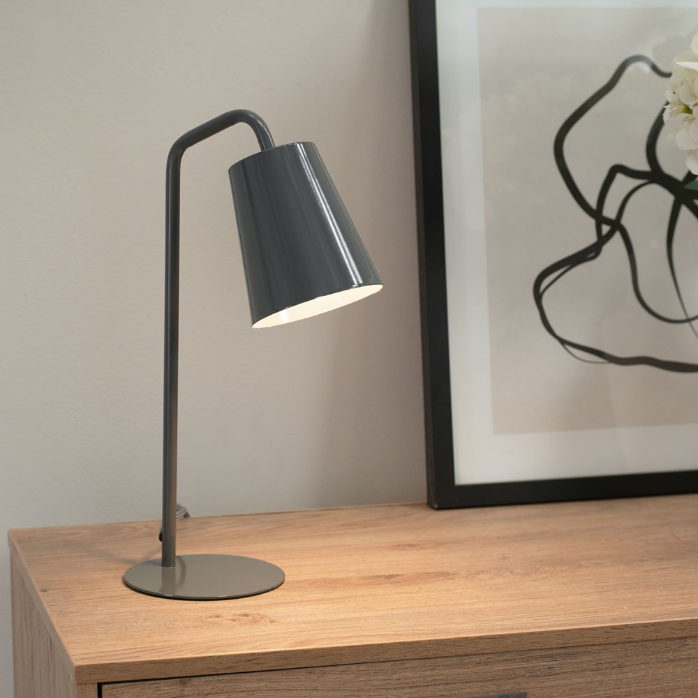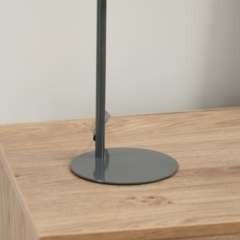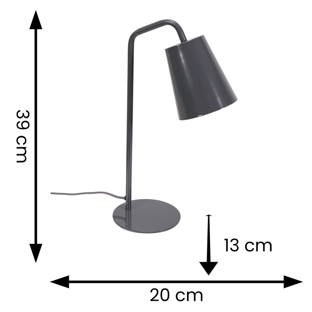 Add a classy touch to your home decor with the ValueLights Bibi Charcoal Grey Arched LED Table Lamp. It features an adjustable lighting head to personalise the lighting according to your preference. This lamp also features a sleek arched stem with a stable base. It comes with an LED bulb to enhance and brighten up your interior space. It has a smooth finish and can be wiped with a clean dry cloth for easy maintenance. This table lamp comes with a one-year warranty.