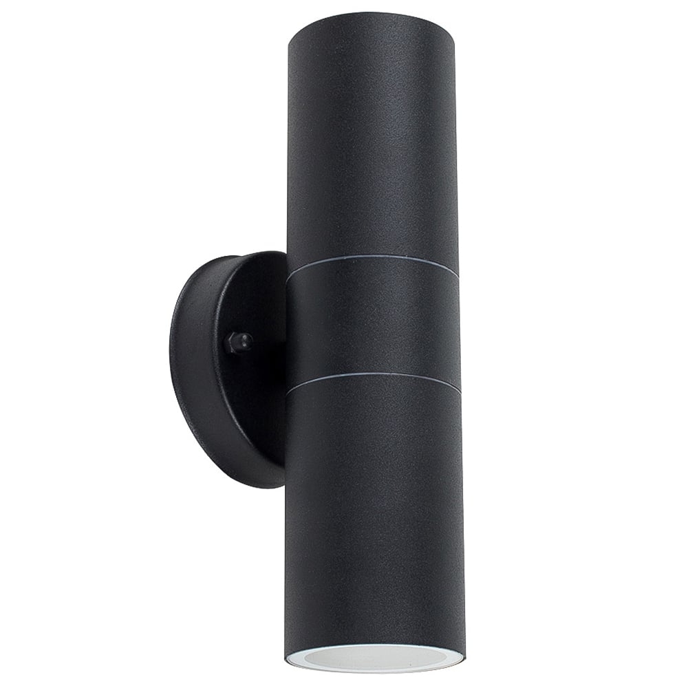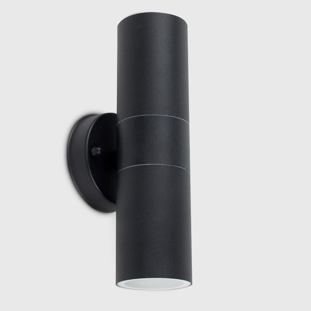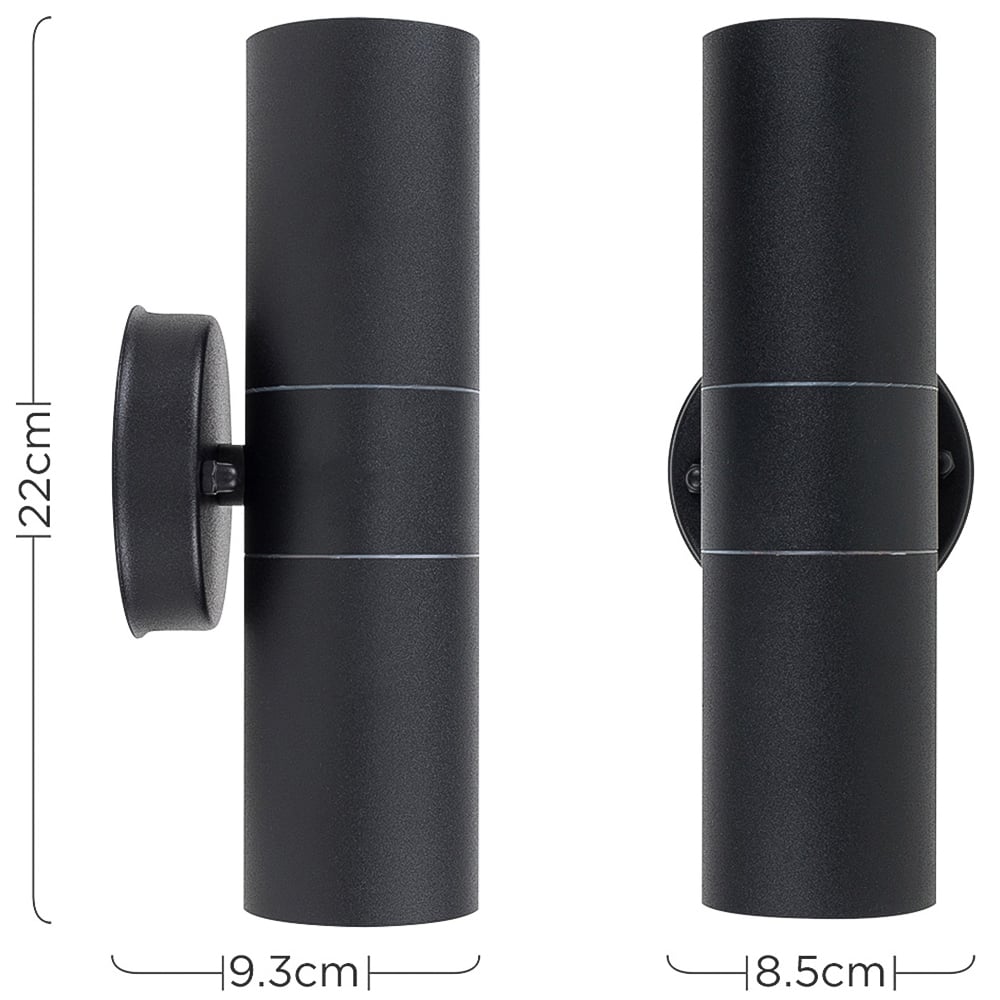 Update your outdoor space with the ValueLights Black Outdoor Wall Up Down Light with Dusk till Dawn Sensor. This modern stainless steel outdoor wall lantern is designed to provide a warm and inviting glow to doorways, porches, and external walls. It's also a stylish way to enhance security for your home, making it perfect for gardens, driveways, patios, and garages. The light emits from the top and bottom of the IP44-rated weatherproof lamp, which is fully certified for outdoor installation. The light comes equipped with ValueLights Branded three-watt dusk to dawn LED sensor GU10 light bulbs. These bulbs automatically switch on as the ambient light drops below ten lux (dusk) and switch off as the ambient light reaches 15 lux (dawn). This feature eliminates the need to worry about forgetting to switch the outside light on or off and helps you save on energy costs. This bulb provides effective security lighting, offering a practical solution for your needs.