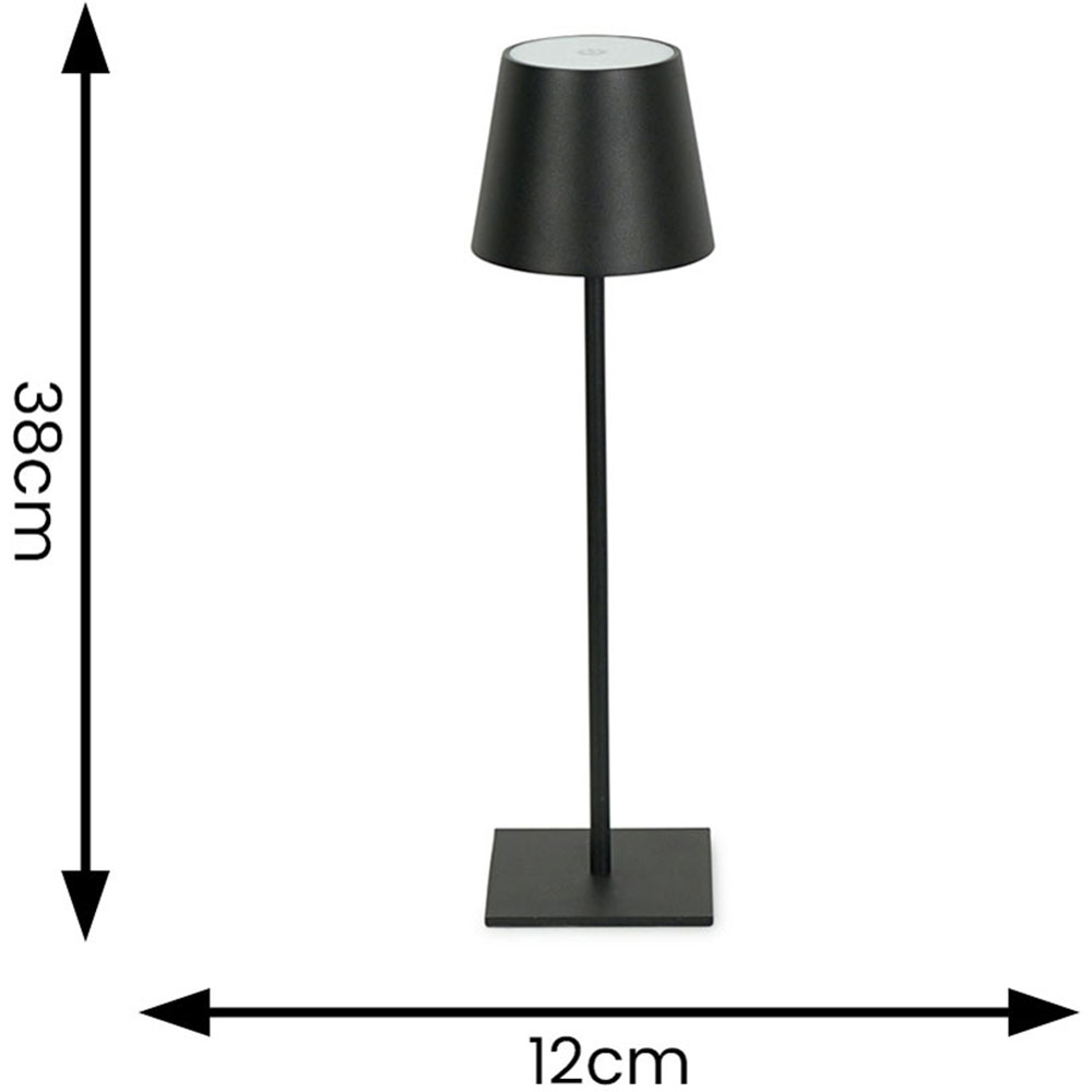 Get an elegant, versatile addition to your tables with the ValueLights Black Rechargeable Portable Outdoor Table Lamp. This lamp is ideal as a reading light, a bedside lamp, or a decorative lamp for outdoors. It features a built-in rechargeable battery that allows the lamp to go cordless. It can be placed anywhere in the room without a socket. You can charge the lamp with the USB plug, then touch the top of the shade to turn the light on and off or hold it for dimming. Please note that the lamp should be charged at least once a month to prolong the battery life.