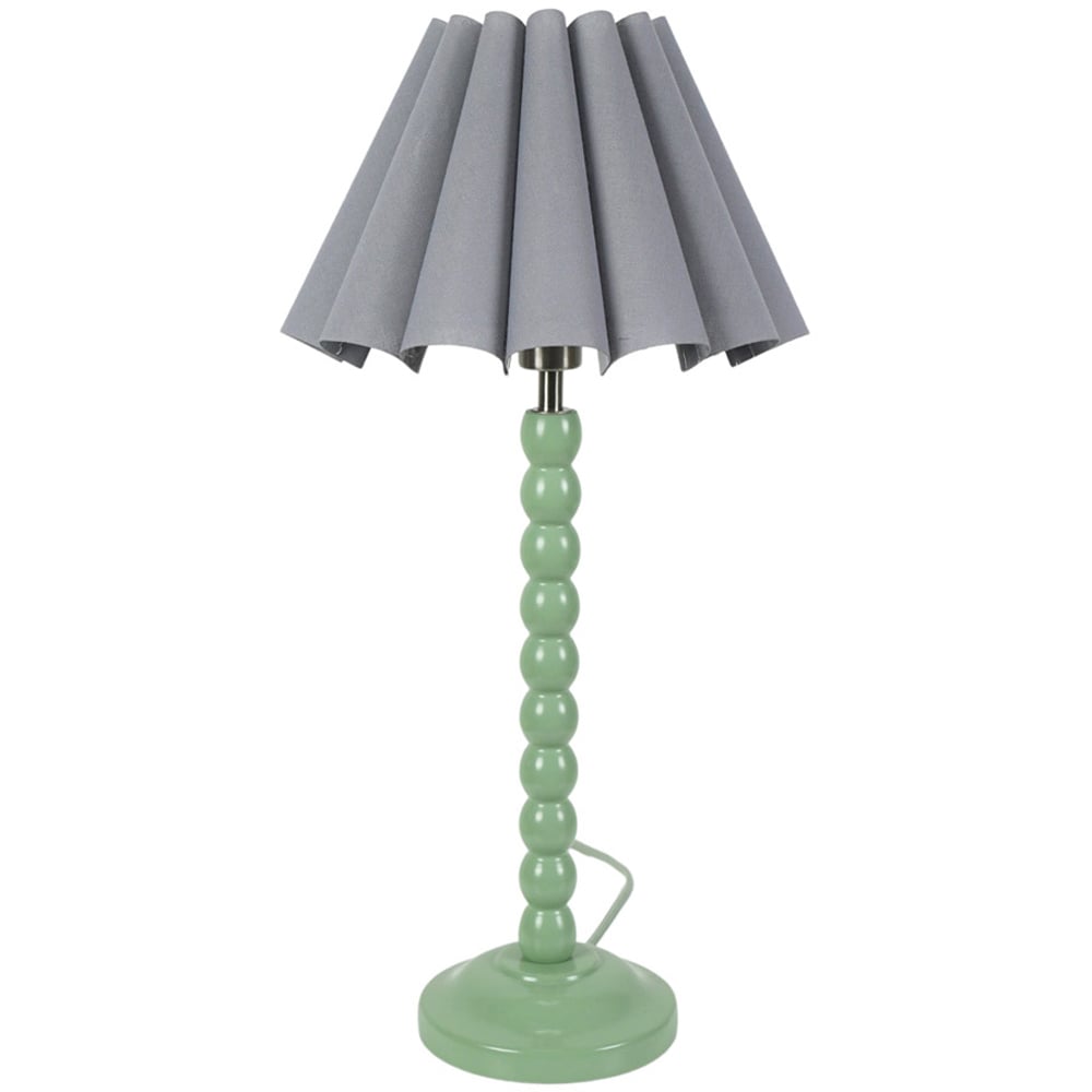 Elevate your decor with the stunning ValueLights Bobbins Grey Scallop Tapered Shade Sage Green LED Table Lamp. Its beautiful round globe shape and glossy finish make it a standout piece. Topped with a stylish pleated drum shade, this lamp is a true centrepiece for any space. Plus, it features a 1.5m cable from the plug to the lamp and an in-line rocker switch for easy use.