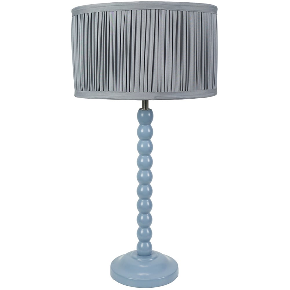 Illuminate your space with the ValueLights Bobbins Pleated Drum Shade Powder Blue LED Table Lamp. Featuring a stacked bobbin design, this lamp is finished in a soft pastel powder blue that complements various decor styles. The powder blue faux silk drum shade, with its ruched and pleated design, enhances the charm of your space by adding a pop of colour. Ideal for bringing life to living rooms or brightening up bedrooms, this table lamp combines style and functionality. It includes a 1.5m cable for convenient placement and an in-line rocker switch for simple use. This table lamp includes a suitable LED bulb and comes with a 12-month warranty for peace of mind. Dimensions: H49 x W25 x D25cm.