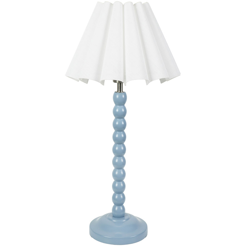 Elevate your home decor with this charming ValueLights Bobbins White Scallop Tapered Shade Powder Blue LED Table Lamp. Featuring a trendy stacked bobbin design and a lovely soft finish, it serves as the perfect base for the scalloped tapered shade. This stylish lamp is ideal for adding a touch of elegance to living rooms or brightening up bedrooms. With a 1.5m cable from the plug to the lamp and an in-line rocker switch for easy use, it combines both convenience and style.
