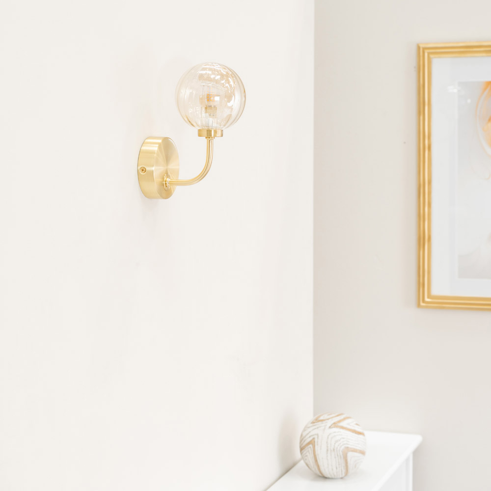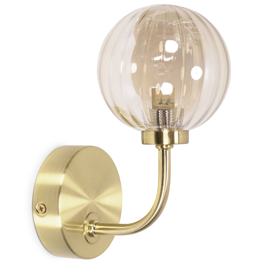 ValueLights Chessy Gold Ribbed Glass Globe Stem LED Wall Light