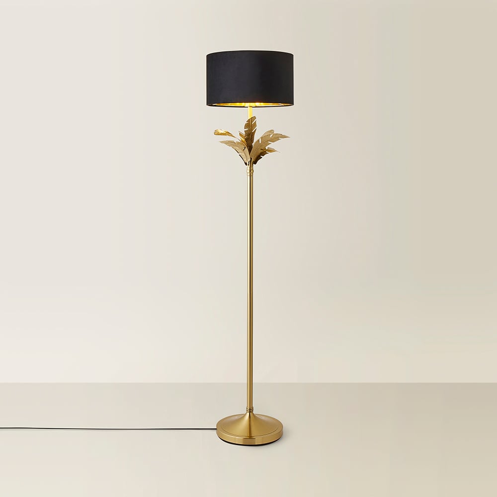 ValueLights Christina Black Velvet and Gold Palm Leaf Floor Lamp with Bulb