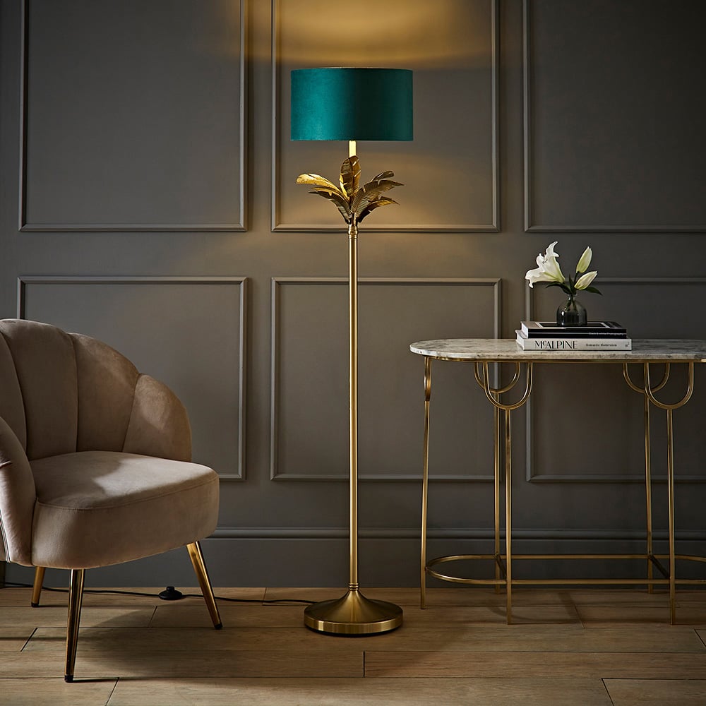ValueLights Christina Green Velvet and Gold Palm Leaf Floor Lamp with Bulb