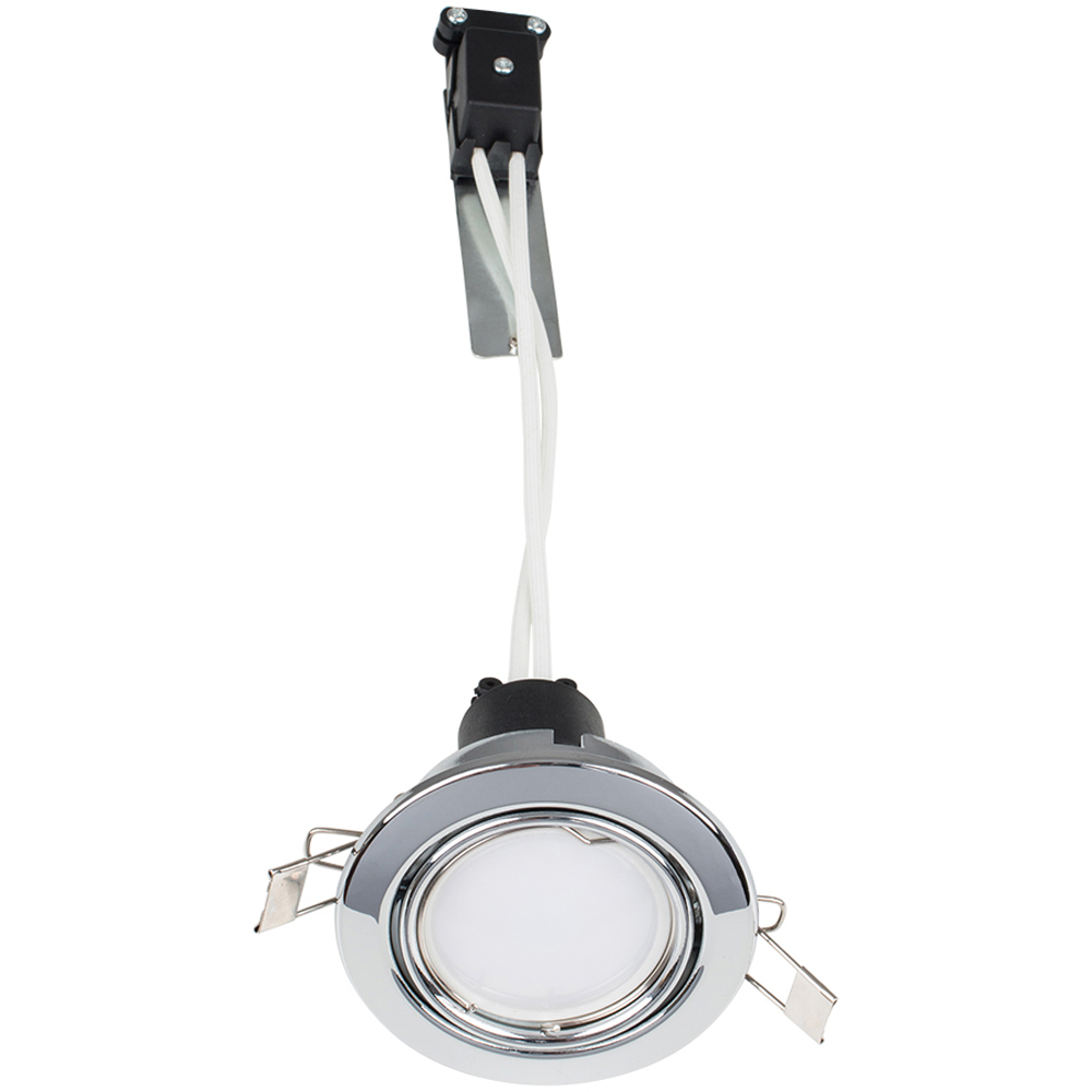 Pack of 6 quality mains GU10 recessed downlights available in a white and a chrome finish. Comes complete with terminal block, GU10 lampholder and bracket. Features metal spring clips for easy installation. No transformer required - simply wire directly to the mains. Supplied with product guidelines and full fitting instructions. Suitable for use with regular halogen or LED GU10 bulbs. Dimensions - height 9.5cm x width 4.7cm x depth 9.5cm.