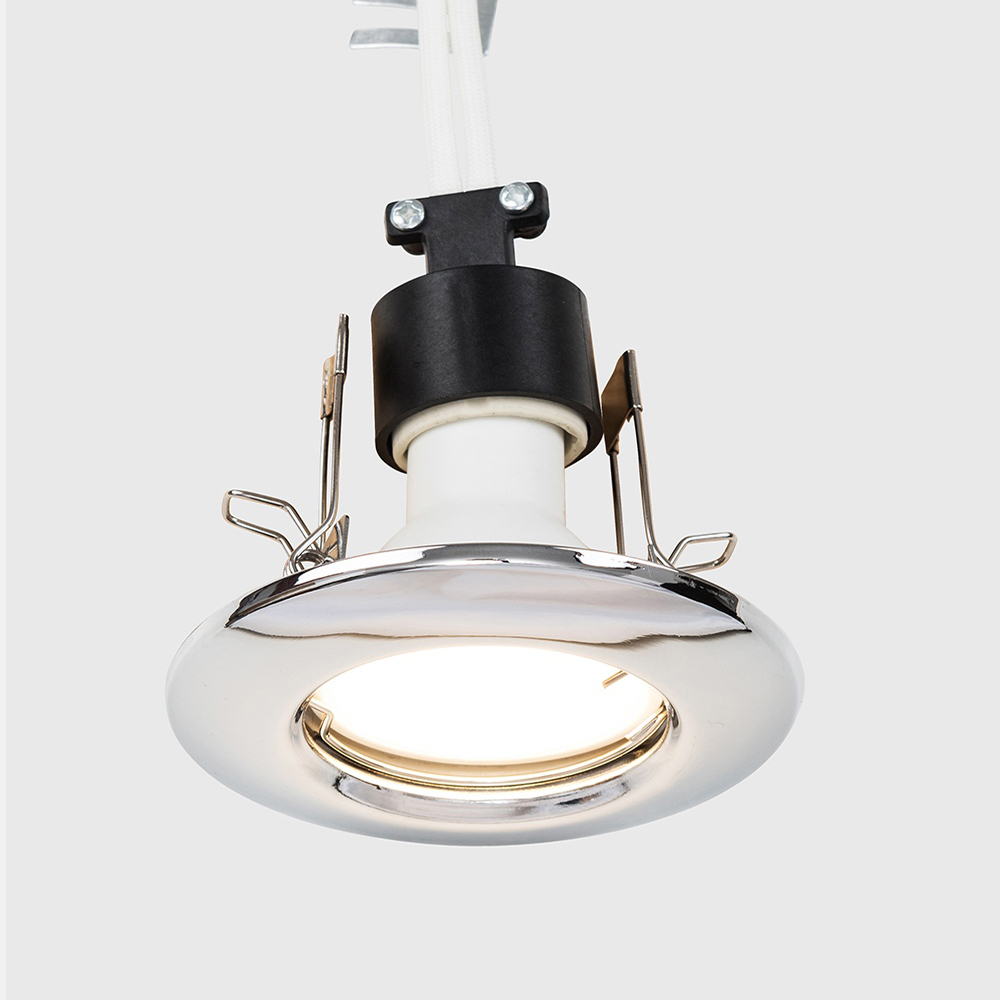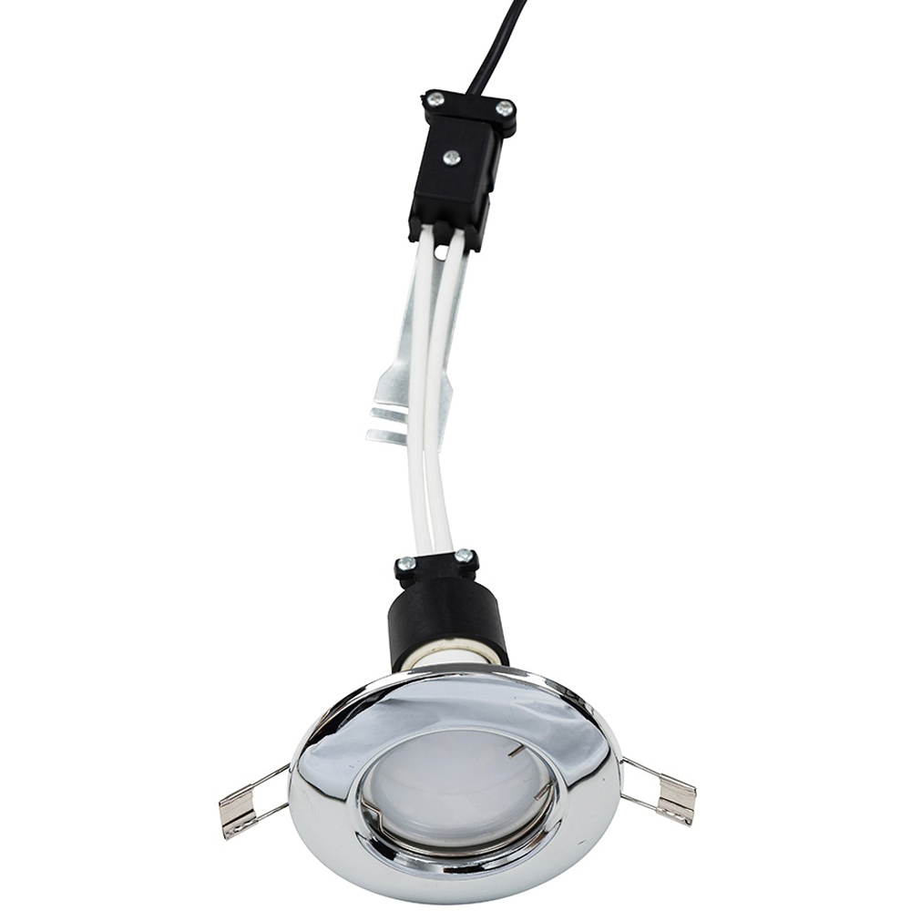 Pack of 10 quality mains GU10 recessed downlights available in a Chrome finish. Comes complete with terminal block, GU10 lampholder and bracket. Features metal spring clips for easy installation. No transformer required - simply wire directly to the mains. Supplied with product guidelines and full fitting instructions. Suitable for use with regular halogen or LED GU10 bulbs. Dimensions - height 8.8cm x width 8.8cm x depth 8.8cm.
