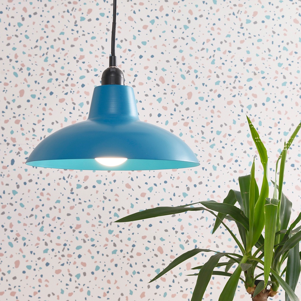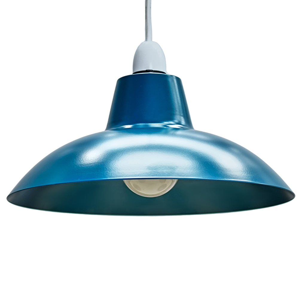 Elevate the style of your home with the ValueLights Civic French Blue Retro Pendant Light Shade. This modern ceiling light features a sleek French blue finish, giving a contemporary update to a classic design. It's perfect for use in the lounge, dining area, bedrooms, hallways, and kitchen. The shade effortlessly attaches to an existing ceiling cord, requiring no electrician for installation. Dimensions: H12.2 x D28.5cm.