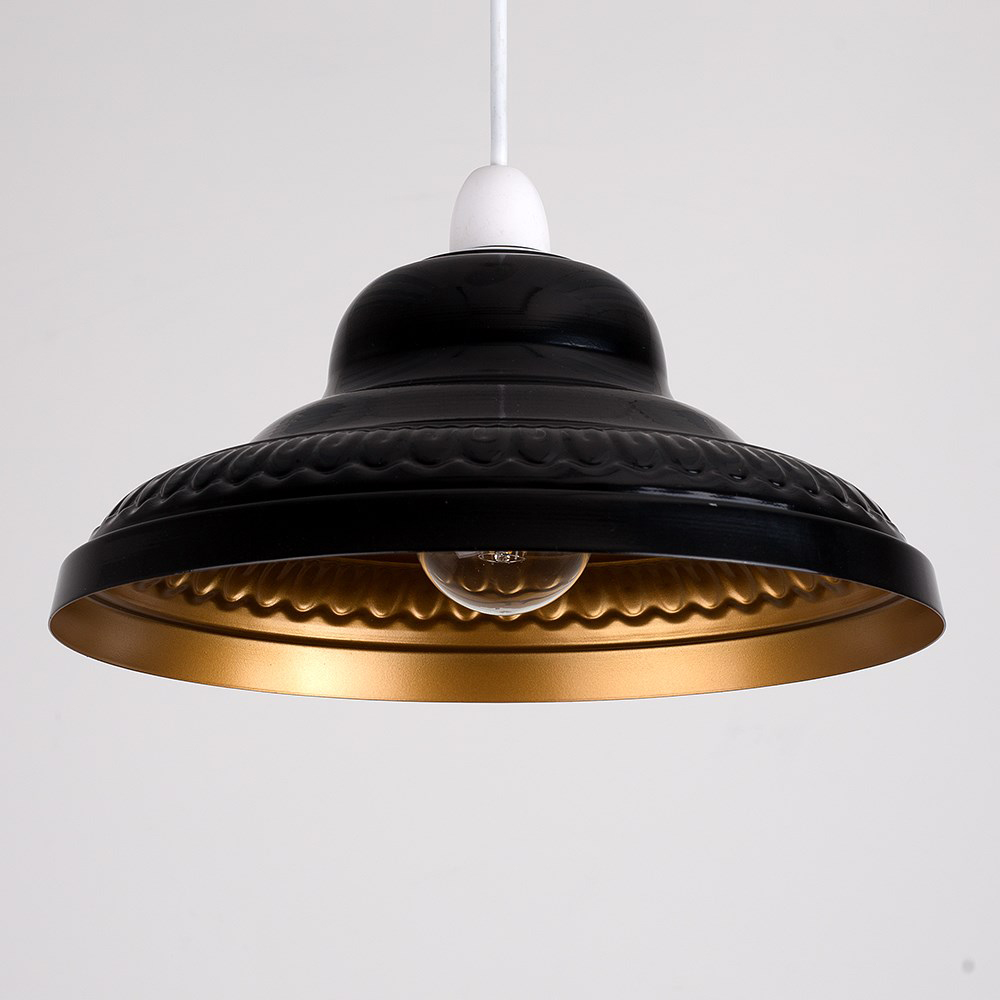 Add a touch of retro charm to your home with the ValueLights Delta Black and Gold Pendant Shade. Featuring a sleek black finish with a warm gold interior, this ceiling light shade brings a stylish contrast to any space. Perfect for lounges, dining areas, bedrooms, hallways, and kitchens, it easily attaches to a standard ceiling socket with no wiring required. Dimensions: H12.5 x Dia29cm. Please note: This item is shade only; electrical fitting is not included.