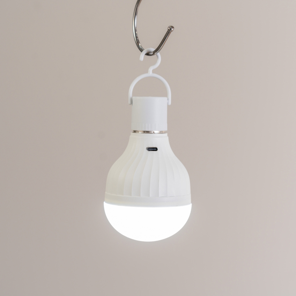 Our rechargeable bulb comes complete with a remote control allowing you to dim the light, choose from warm, cool or a bright white glow and set timer functions (15/30/60 min). The recommended charging time for a full charge is 5 hours to get 15 hours of glow time. This bulb can fit any ES E27 cap lamp and also comes with a hook making it ideal for camping. Complete with a 1M USB charging cable. Rechargeable, so no wires in the way.