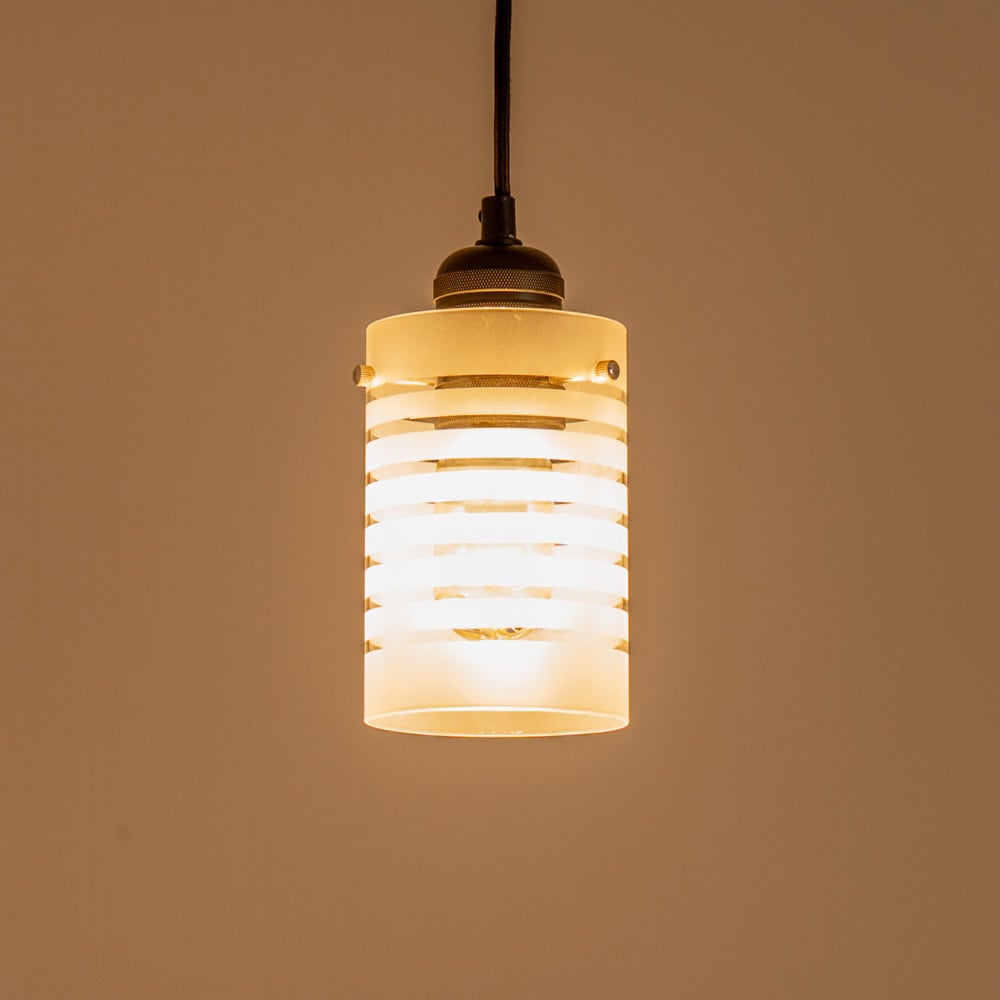 - Cylindrical shape and frosted glass finish