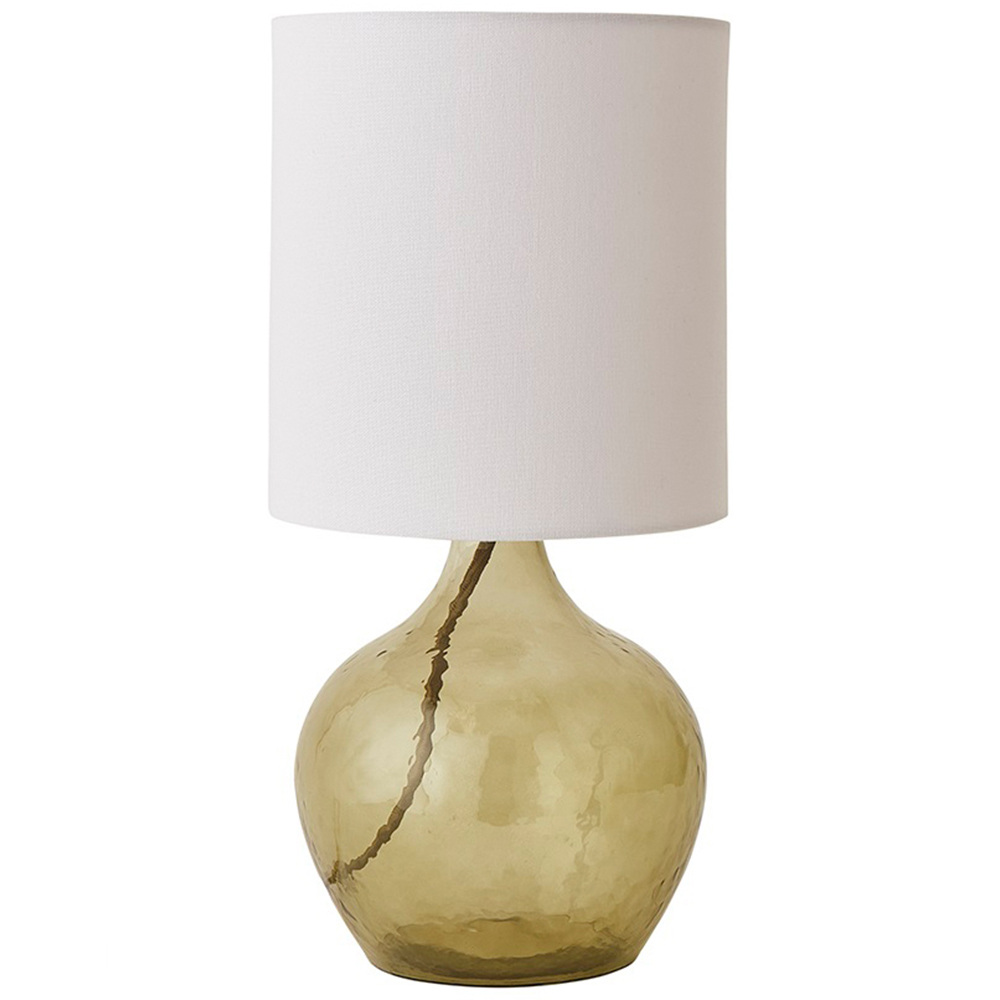 ValueLights Emily Natural Linen Drum Shade Dark Green Glass Teardrop LED Table Lamp